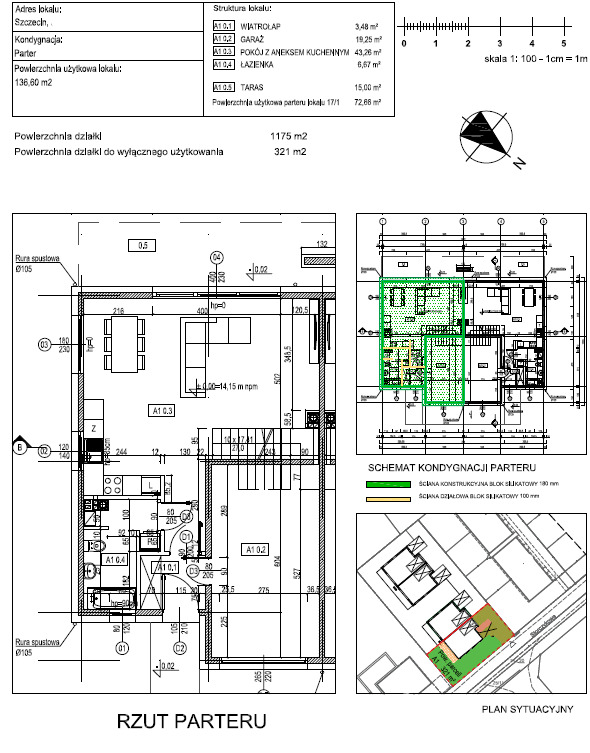The house is located in Szczecin on the right bank. On the ground floor there is a spacious living room with a kitchenette and access to the terrace, bathroom and garage. On the first floor there are 4 rooms and a bathroom. The plot is equipped with power, water and sewage networks,