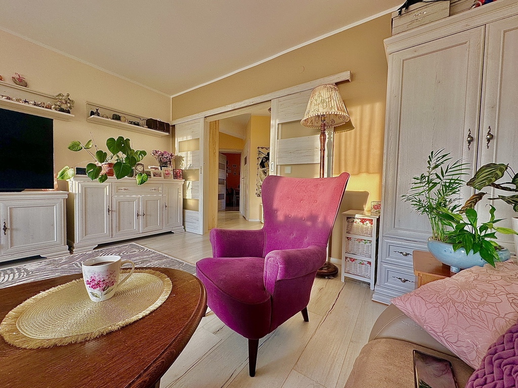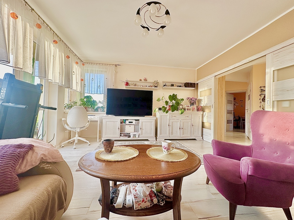 For sale spacious and bright 3-room apartment of 75.6 m² on the 1st floor of an intimate block in a quiet area. Thanks to the south-west exposure, the interiors are sunny all day long, and from the large balcony you can admire picturesque sunsets. Advantages of the property: • 3 rooms – ideal for a family, a couple or people who value space • Spacious balcony with a beautiful view • Low rent – PLN 560 / month • Community parking with remote control, very convenient access from the center (from two sides) • Quiet area, close to the city • Additionally: storage room 11.8 m² New price: PLN 690,000 The offer is ideal for families, couples, singles and people working remotely who are looking for a comfortable and bright apartment.