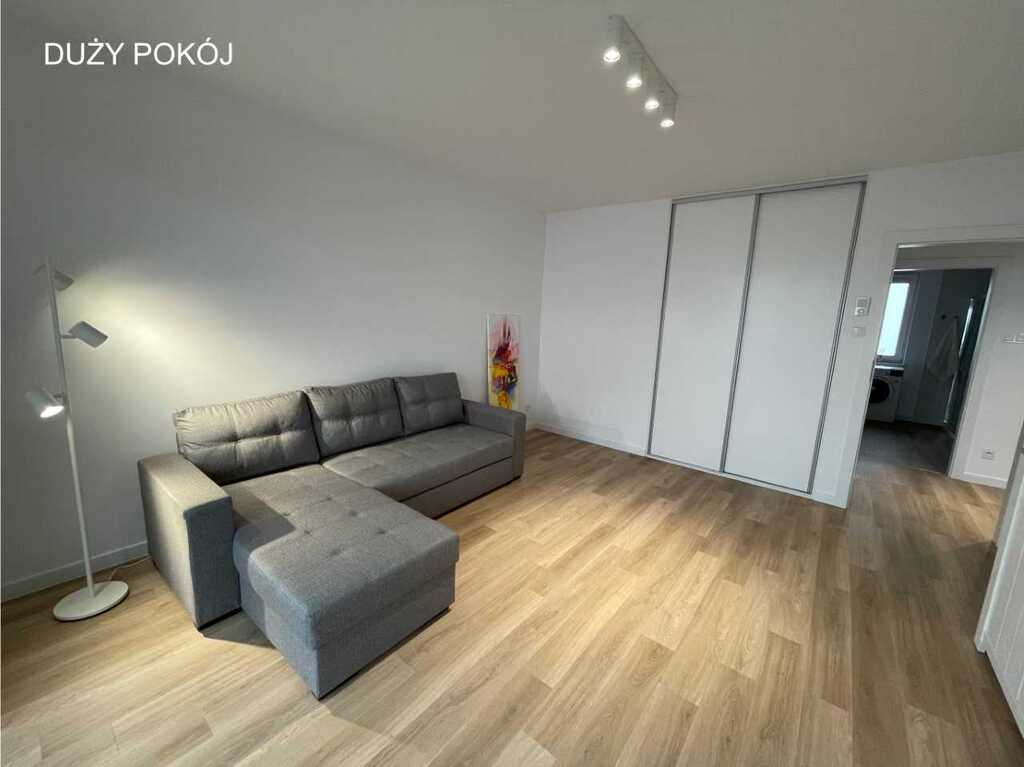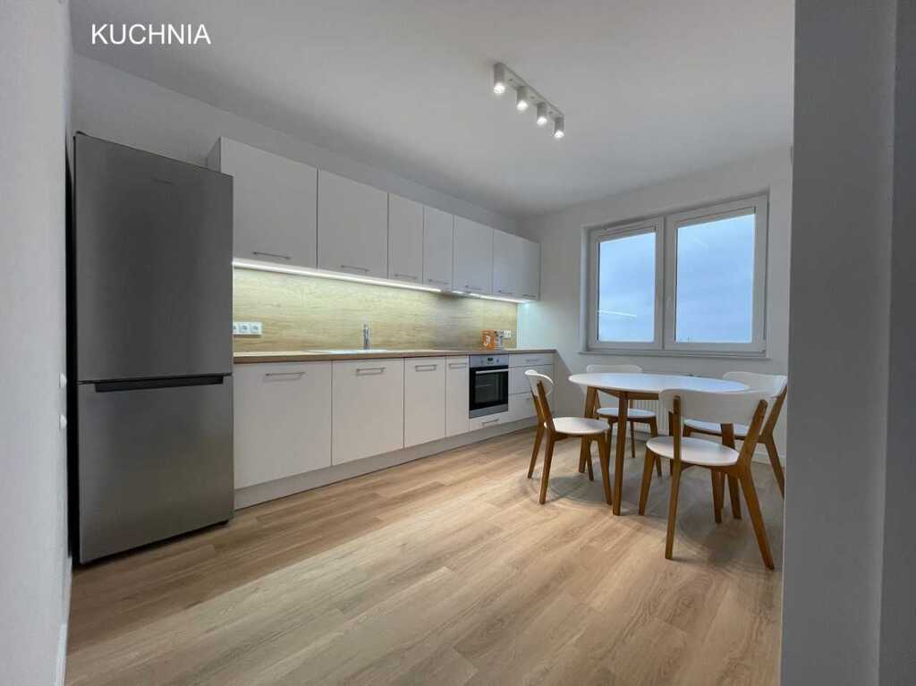 Rent from February 1, presentation from January 7, 2025.2025. 2-room, quiet, spacious and sunny apartment in the vicinity of Puszcza Bukowa. The apartment consists of a bright, spacious and well-arranged living room. Bedroom. Separate kitchen with a table. Bathroom with shower and washing machine. Hot water and city heating. Insulated block. Excellent location provides access to shops, recreational areas, playgrounds, public institutions, public transport. Area 56.4 m2, which includes: – living room (fold-out sofa, chest of drawers, large wardrobe) – kitchen (fridge, oven, 4-burner induction hob, dishwasher, table with 4 chairs, electric kettle) – bedroom (bed 200cmx160cm, chest of drawers, bedside table) – bathroom with window (washing machine, shower cubicle, washbasin) – hall (large wardrobe) – terrace 14m2 The apartment includes a utility room of 2.25 m2 Fees MONTHLY RENT PLN 2,400 + PLN 356.00 advance payment to the cooperative (including cold water, garbage) + fees according to consumption; electricity, heat (SEC). Optional Internet (ORANGE, UPC). DEPOSIT PLN 5,000 AGREEMENT – occasional rent. Non-smokers, no pets.