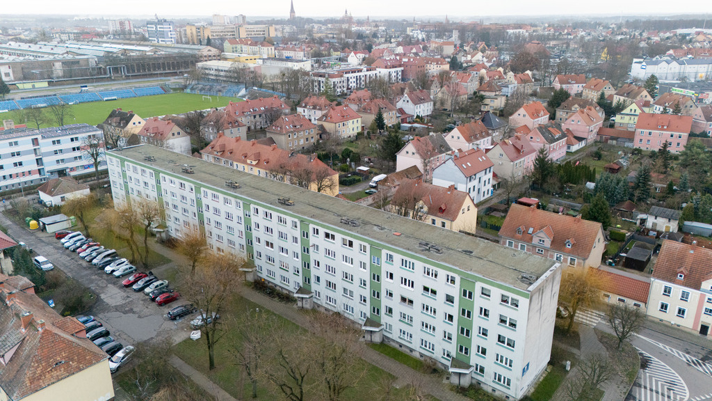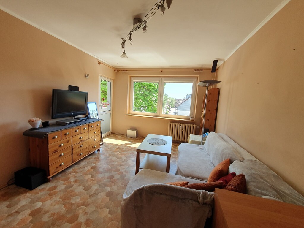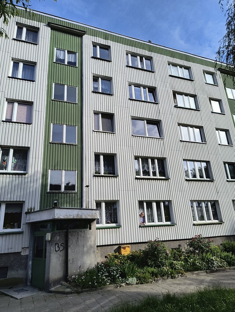 The property is located on the 3rd floor in a 4-storey block of flats from 1976, concrete building, well-arranged apartment, very sunny. The building will have its facade replaced in 2026. The apartment requires renovation/finishing, it is emptied (zeroed) and prepared for work. The building is insulated. The windows have been replaced with 2 and 3 panes. There is a roller blind on the balcony. There are large windows on both sides of the apartment, the apartment is bright and very spacious, the sun shines in from both sides of the apartment. The apartment is quiet and you can’t hear your neighbours. The apartment is currently inhabited, delivered at the end of the 1st quarter of this year. Possibility of purchase by people from Ukraine. Central heating and hot water from the city network. The apartment includes a basement. There is also a pushchair/bicycle room and a drying room for residents to use.