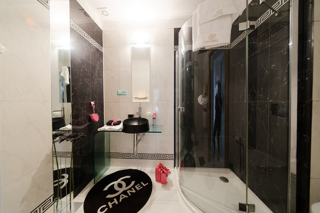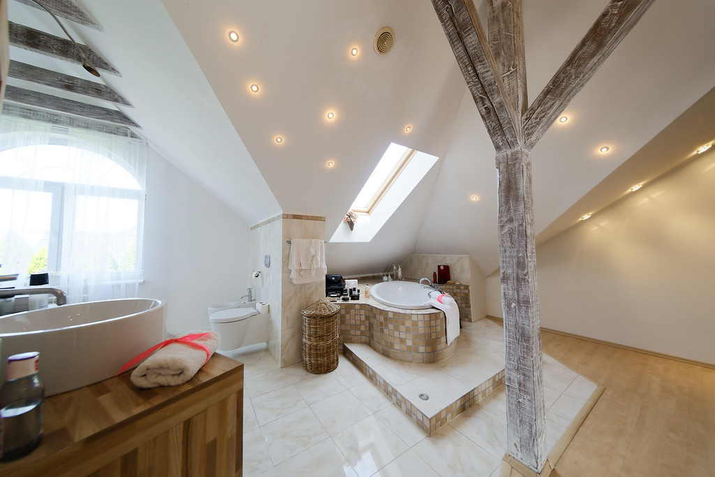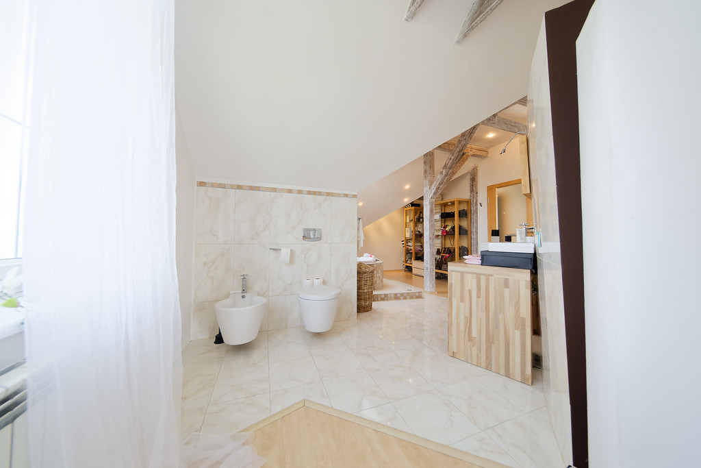 •bedroom with spacious open space bathroom