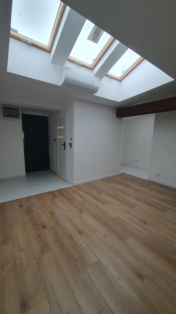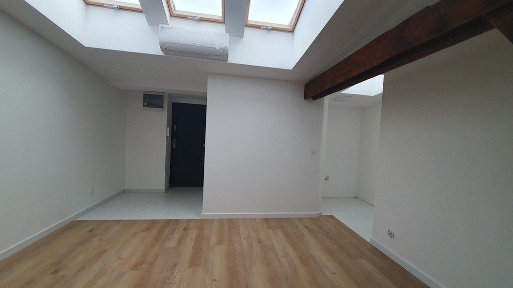 Ready, atmospheric studio in the very center of Szczecin at al. Piastów. Attic adaptation: – living room combined with kitchenette 19.24 – bathroom 2.97 m2, – corridor 2.84 m2. Total area 25.05 m2 (usable area according to design documentation 25.05 m2) Turnkey finished apartment. Smoothed and painted walls, very good quality panels on the floor. The price includes a finished bathroom (tiles and terracotta, white assembly). Anti-burglary, fireproof entrance door. All new installations. Heating and air conditioning in one, which provides warmth in winter and coolness in summer. The price is gross, includes VAT – the buyer does not pay 2% PCC tax. Atmospheric, bright, sunny apartment. The offer is worth recommending due to the location, close to shops, universities, public transport stops.
