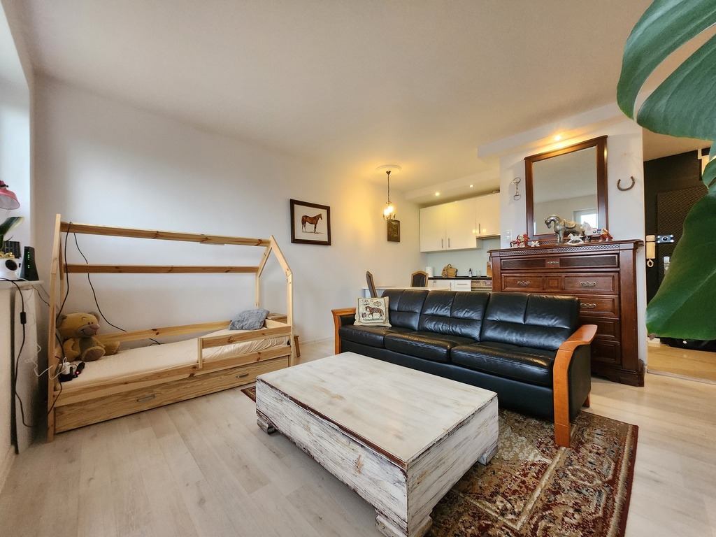 Living room with a part where you can separate the bedroom part. There is a spacious built-in wardrobe.