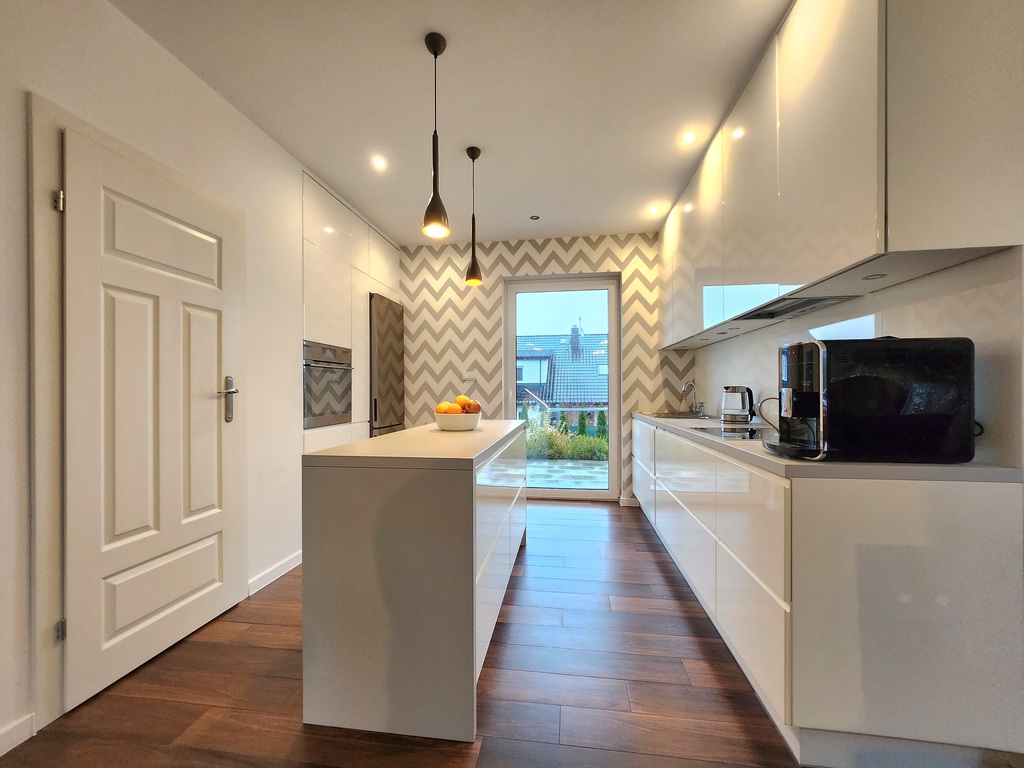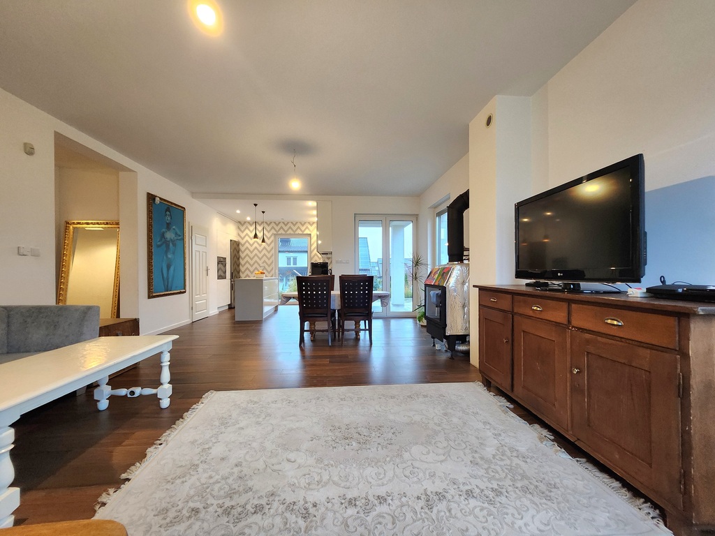 – large living room with dining room, approx. 32 m2, with exit to the terrace and garden.