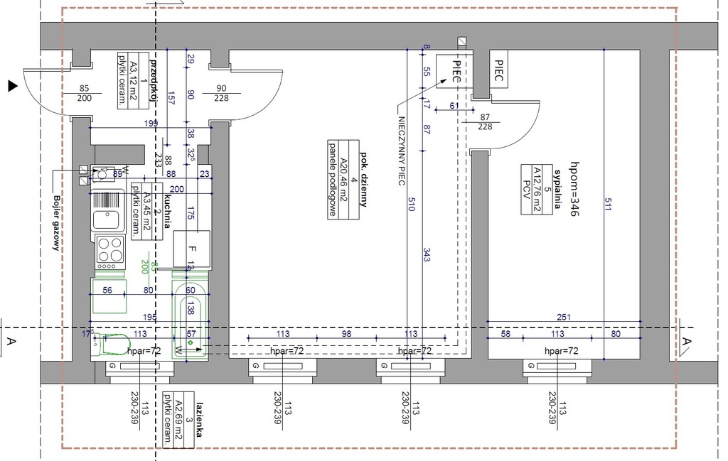 Small rent (PLN 260 = 77 FR). The apartment includes a basement (10 m2)