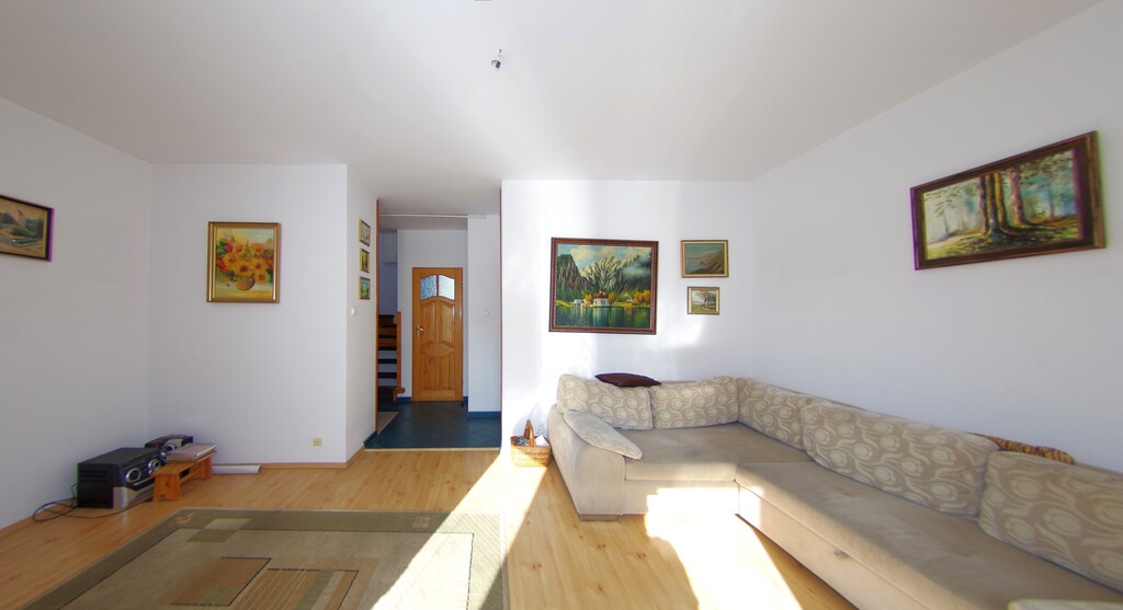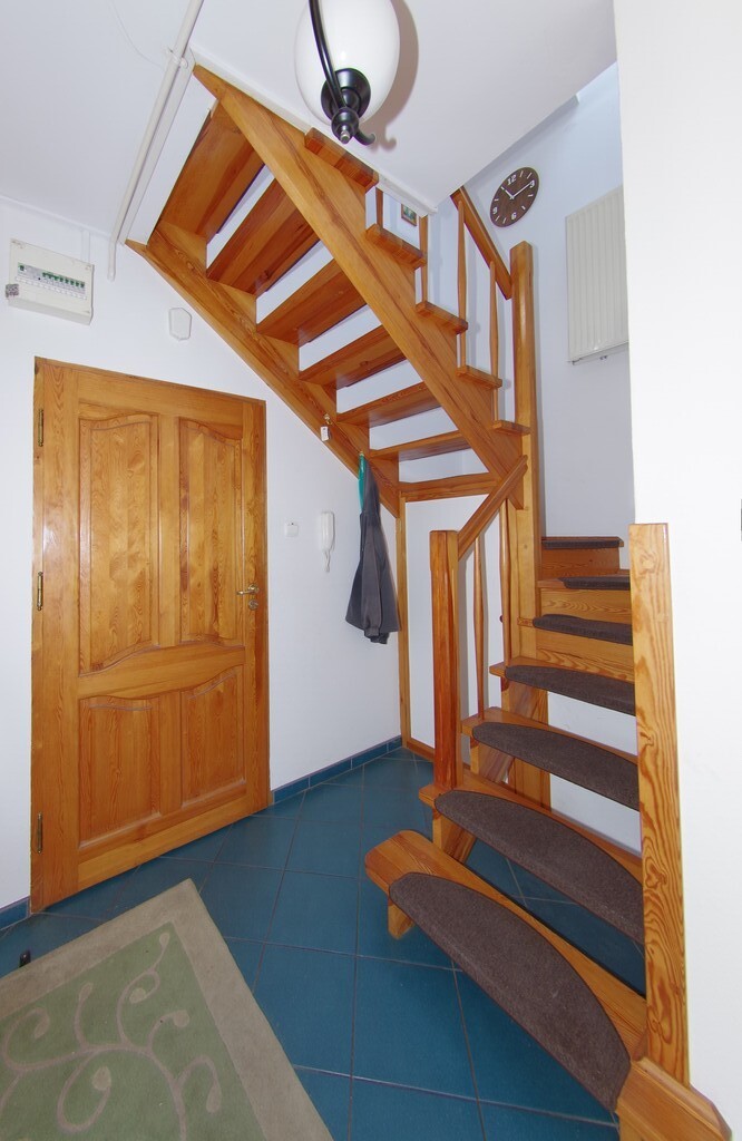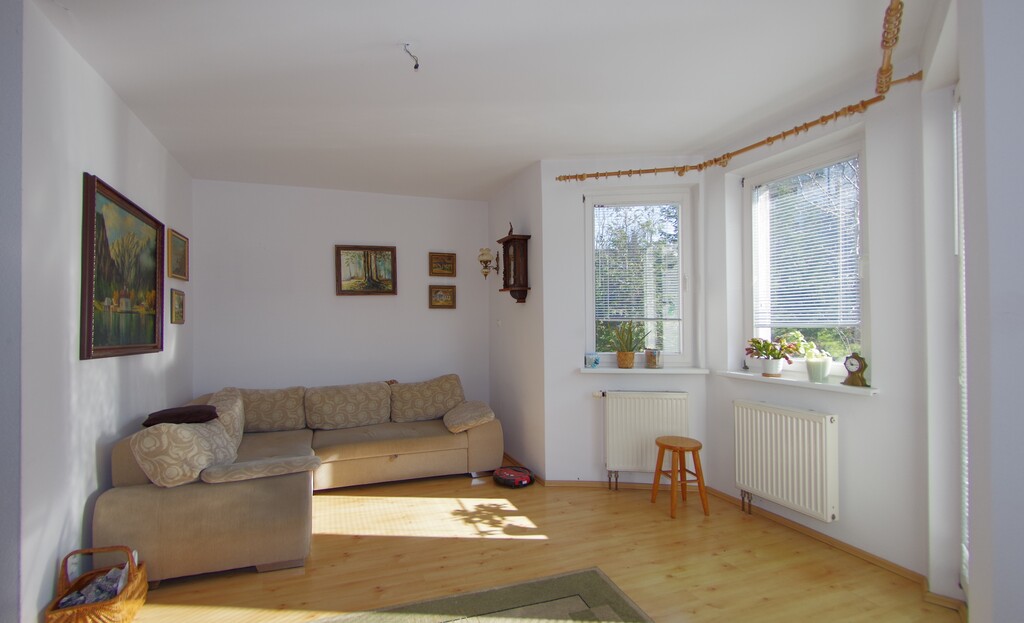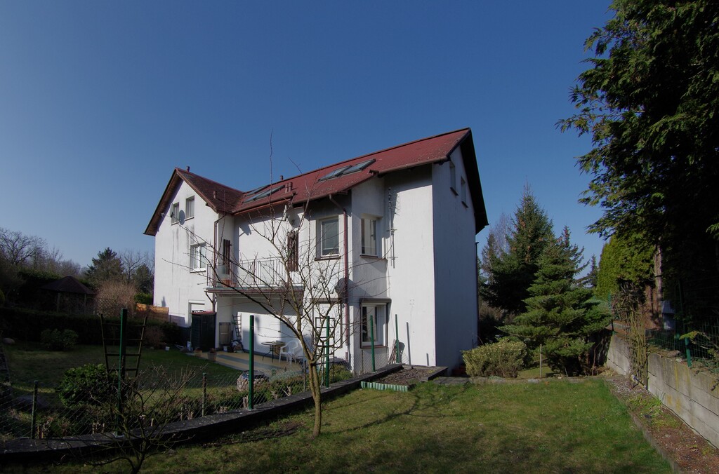 Very interesting offer of a two-level apartment without rent in a four-family building. The property consists of: Apartment I level: living room with access to a large balcony, kitchen as a separate room, toilet with window II level: two large rooms with sloping ceilings, bathroom with window and wardrobe basement 6.8 m2 garage 16.6 m2 for an additional price of 49 thousand garden approx. 100m2. Well-kept apartment, panels on the floors, painted walls, kitchen furniture, built-in wardrobes and a furnished bedroom remain in the price. Bathroom in tiles and terracotta, bathtub and shower – window. The kitchen is a separate room but can be opened to the living room. Wooden stairs. Heating and hot water from a two-speed furnace. Quiet, intimate estate, with nice views. Without encumbrances, ready to be released immediately. We invite you to the presentation.
