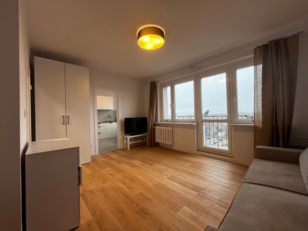 The offer includes a sunny studio apartment located on the Słoneczne estate. The property is located on the 7th floor of a 10-story building from the 80s made of large panels. The building has two elevators. The total area is 31m2, including a room with access to the balcony, a furnished kitchen, a bathroom with a shower cabin and a hall with a spacious wardrobe. The apartment is furnished and equipped. Additional fees include rent to the manager of approx. PLN 380, including an advance payment for heating, hot and cold water and administrative costs and gas. Electricity according to consumption. Heating and hot water from the city network. Very good access by public transport. Nearby there are numerous shops and commercial premises as well as a public parking lot. 1-month deposit. The apartment is available immediately. I invite you to familiarize yourself with the offer in person. Keys in the office.