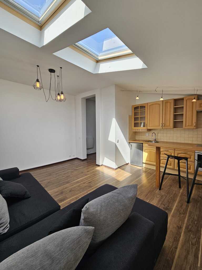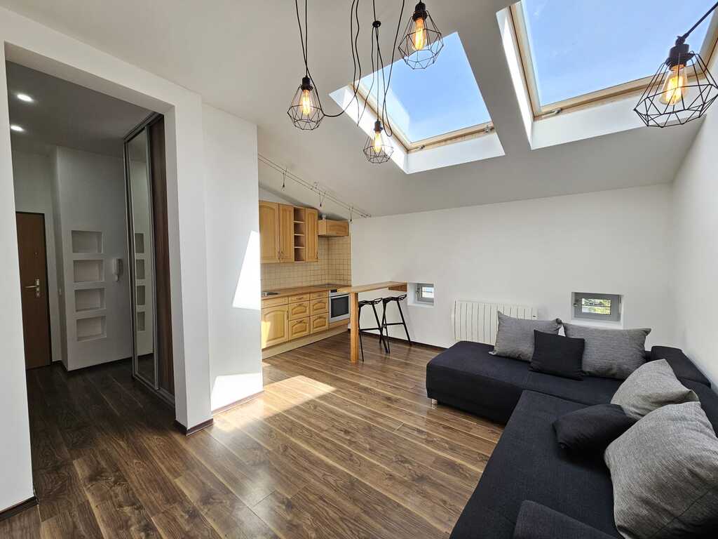 Sunny attic adaptation with an area of 27.99m2 in a pre-war tenement house, built in 2010 on the border of Drzetów with Grabów, close to Stefan Żeromski Park. 3-storey building. The apartment is located on the 3rd floor. The premises consist of a room with a kitchenette, a hall and a bathroom with a toilet. In the apartment on the floor panels. Smooth painted walls. Kitchen with cabinets and household appliances such as a fridge, oven, electric hob, sink. Tiled bathroom, in it a shower cabin, toilet, washbasin. The furniture visible in the photos can stay in the apartment. Investment ready for rent or for quick move-in! Electric heating, hot water from an electric boiler. We have a project for connecting the gas installation. Low rent of PLN 210. Low electricity charges in winter. Tenement house in good condition, new elevation, new gate, clean staircase. Location close to the center, close to public transport. 10 minutes walk from the Galaxy Shopping Center. Price negotiable. Quick delivery date. We invite you!