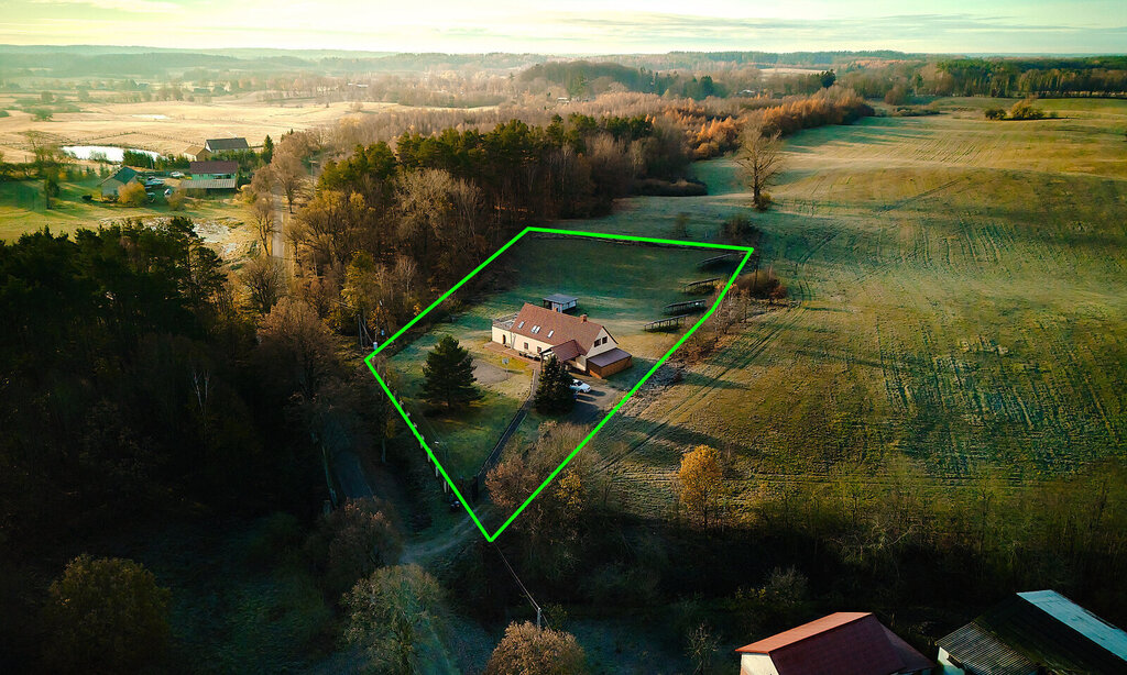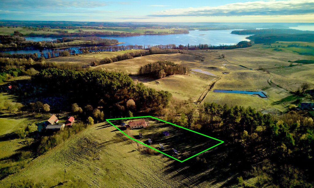 The property is located approx. 600 m from the western shore of Lake Drawsko , in the Jadwiżyn settlement in the Warniłęg village, Złocieniec commune, Drawsko district, West Pomeranian Voivodeship.