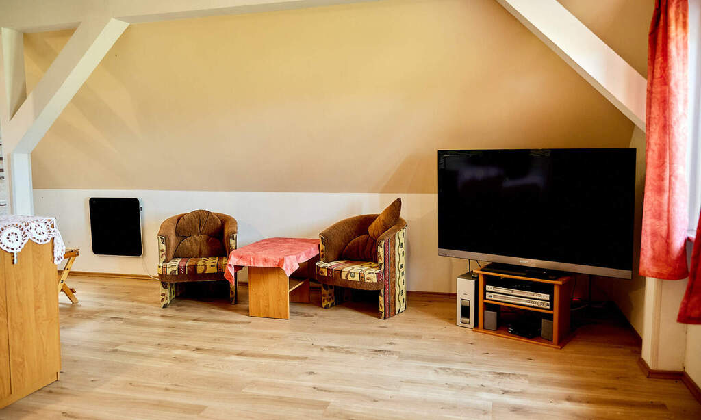 Thanks to its functional layout (five two-person apartments with bathrooms), the house can not only serve as a comfortable place to live even for a large family, but also allows for the rental of part of the rooms or running a guesthouse or agritourism business.