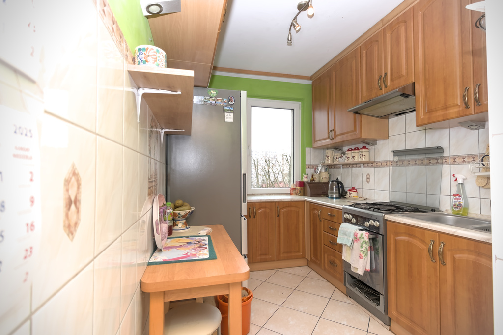 For sale a three-room apartment in a great location, Majowe housing estate. The premises have an area of 63.8 m2, with a favorable layout of rooms, located on the third floor of a low, insulated building, full ownership. The above-mentioned area of the premises consists of: – living room approx. 19 m2 with access to a sunny balcony on the west side, – 2x rooms approx. 11 m2 – bright kitchen approx. 6.5 m2 equipped with furniture – bathroom with a bathtub, separate toilet, – corridor with useful storage spaces and cabinets. The rooms have panels, in the kitchen, bathroom and corridor tiles, painted walls (to be repainted at your own discretion), windows replaced with PVC. Heating and hot water from the city network, rent is approx. PLN 750 and includes administration costs, advances for water consumption and heating, renovation fund, flat-rate gas and garbage collection. Staircase after renovation, the intercom has also been replaced. The owner also uses the basement room. Well-developed infrastructure, quiet area and good access to public transport. In the area there are numerous shops, a pharmacy, a playground. The apartment is ideal for a couple and a small family. The date of delivery of the premises to be agreed with the current owner (there is also a possibility of exchanging for a two-room apartment, on the ground floor, preferably in the Zdroje district). We recommend and cordially invite you to the presentations. Exclusive offer.