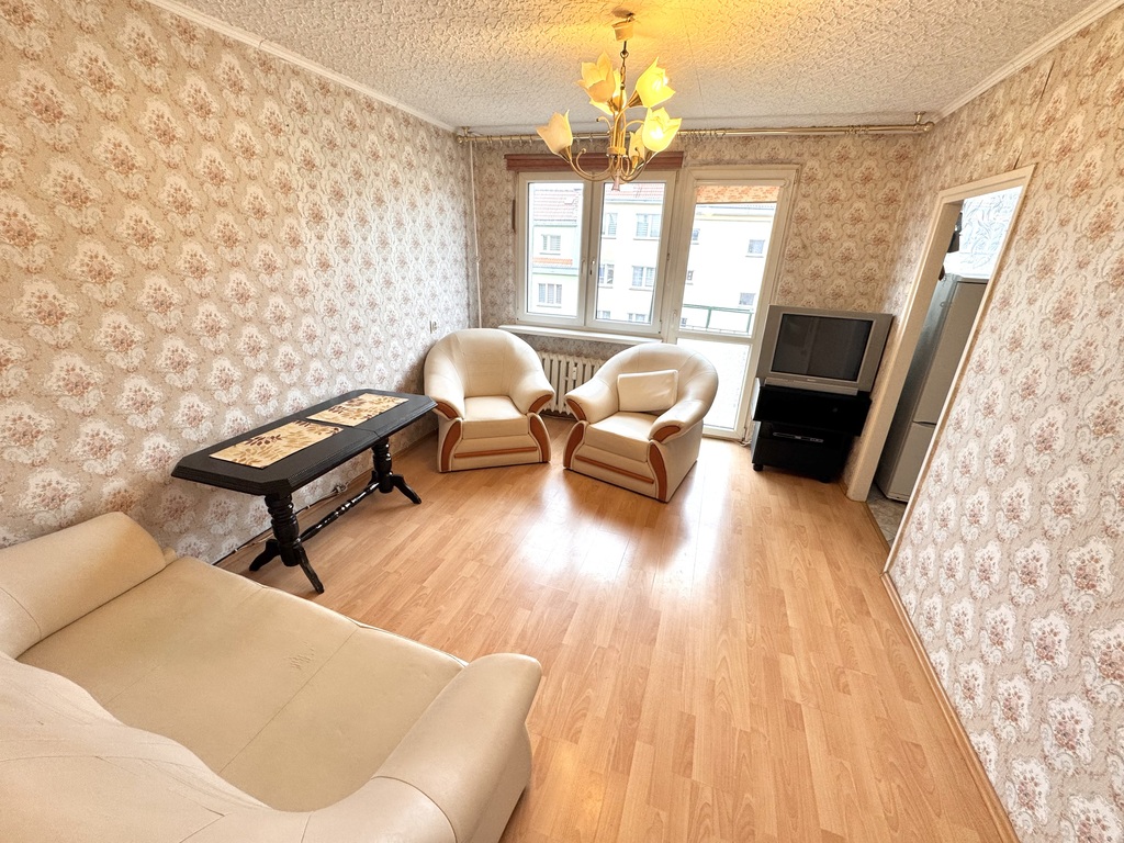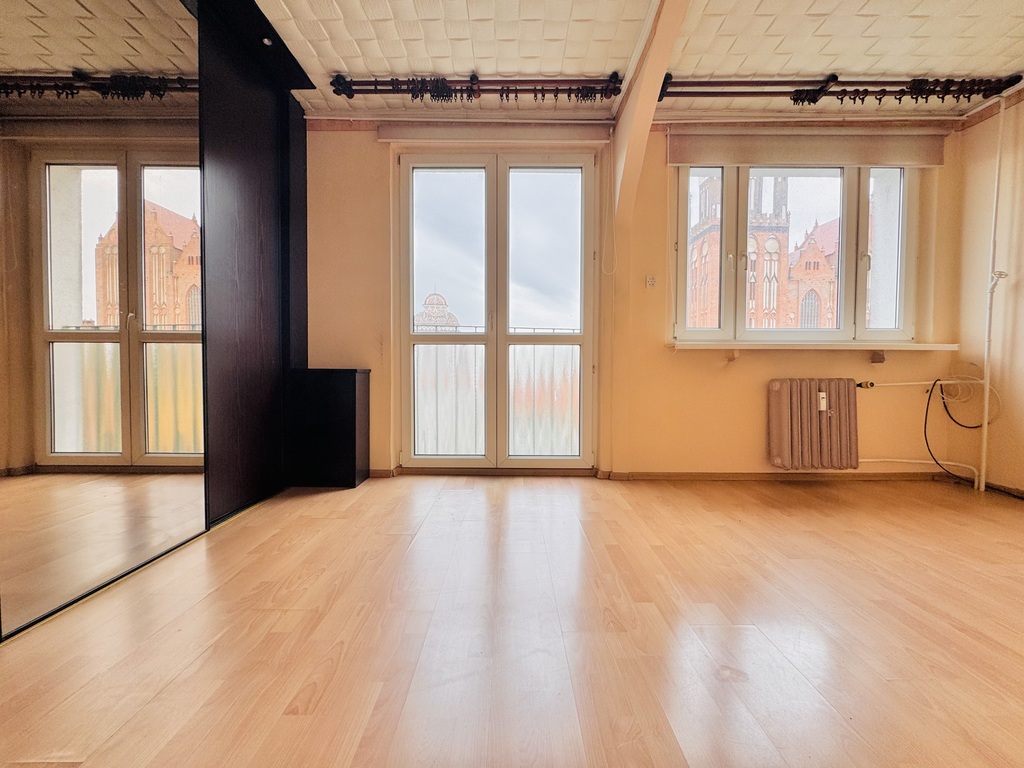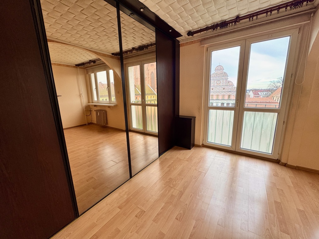 For sale a very nice, sunny apartment of approx. 53 m2 located on the fourth floor in a building from the 60s. The property is in a great location! A treat for people who want to live in the city center in the Old Town in the vicinity of such architectural monuments as: the Town Hall, a Gothic church, the medieval defensive walls of the city, a gallery and a museum. In the immediate vicinity there is also a shopping mall Starówka, a hotel, a playground, schools, restaurants and other public utility points. The living area consists of: – living room with access to a covered balcony (approx. 14 m2), – room (approx. 9 m2), – room with a built-in wardrobe and large windows with a view of the castle (approx. 10.5 m2), – bedroom (approx. 6.5 m2) – currently connected to the room above, – separate kitchen with a window (approx. 5 m2), – hall with a built-in wardrobe (approx. 6 m2), – bathroom with a bathtub (approx. 3.5 m2). The apartment is very bright, fully functional with windows facing two sides of the world. PVC windows. Heating and hot city water. The building is insulated. A big advantage is the basement belonging to the apartment. Public parking spaces available around the property. Average monthly rent payable to the manager (including all fees and advances for water, heating, garbage, renovation fund, etc.) in the amount of PLN 570. Property with the status: full ownership with land and mortgage register. I invite you to the presentation, the apartment looks great in reality.