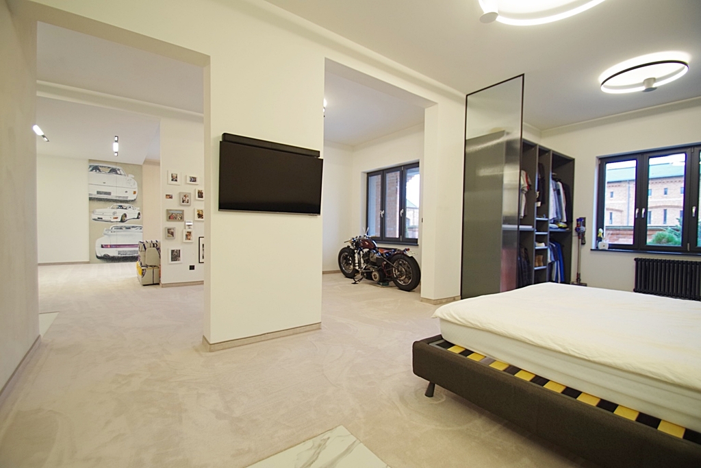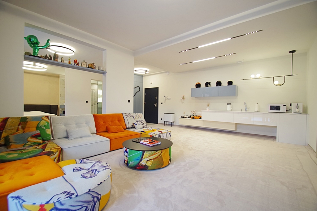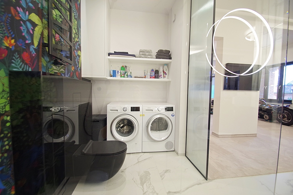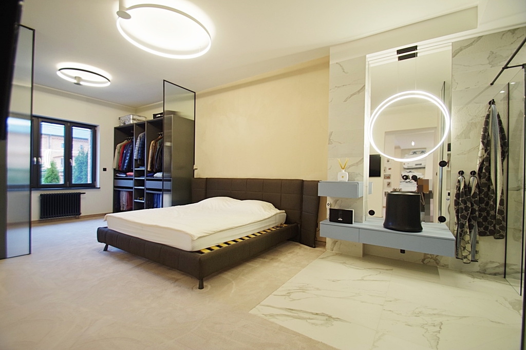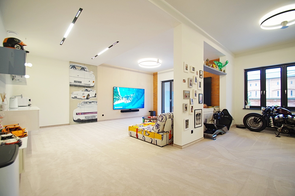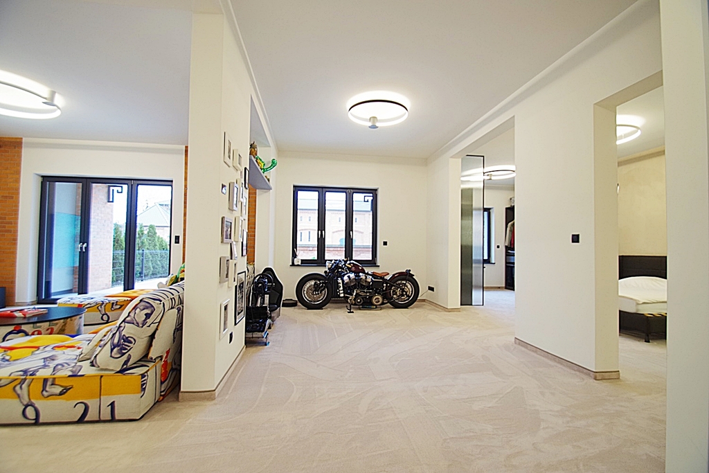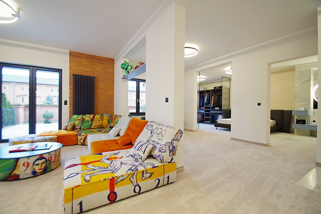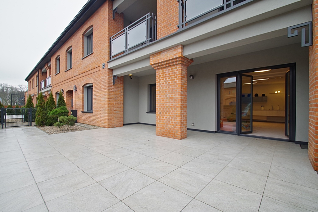 Skarbimierzyce Unique and beautiful loft-type apartment in the guarded housing estate Folwark Botanica, created from the former space of the manor-park-farm complex. The apartment was completely open, without partition walls, only the necessary structural elements were left. The reconstruction was carried out in accordance with the art of construction and the change of rooms and shares was entered in the land and mortgage register. Total area of 83.65 m2 visually divided into the day zone – living room connected to the kitchen open to the hall and exit to the terrace and the night zone – bedroom with bathroom and large wardrobe. Thanks to the height of 3 m, the whole creates a harmonious and very spacious area. The premises were finished with attention to detail from high quality materials. On the floors there was a thick carpet imported from Spain, this is also where the velour wallpaper comes from, which covered part of the walls, ceramic plate with graphics from France and faucets from Germany. The wall graphics were made on concrete slabs, the lighting is dimmable entirely by remote control, electronic monitoring, remote-controlled external blinds, electronic entrance lock with the possibility of remote opening, accordion mosquito nets in all windows. Aluminum windows and terrace doors, heating from a modern gas furnace. Rent to the Manager in the amount of PLN 684, water and electricity according to consumption, gas in the summer periods around PLN 50, winter PLN 230 per month. The staircase is maintained in the dominant palace style. The apartment includes one parking space in front of the building. Parking for guests located in front of the entrance gate. It is possible to leave equipment for an additional fee The entire complex is fenced, monitored with a guardhouse at the entrance gate, security authorizes entry of each guest. A recreational area with a sauna and gym will be built on the estate, as well as a small shopping center for residents with a market, catering and medical offices. Beautifully maintained park with a small lake with numerous islands interwoven with walking paths with a total length of 1300 m and places for physical activity. I cordially invite you to the presentation and recommend it due to the unique offer.