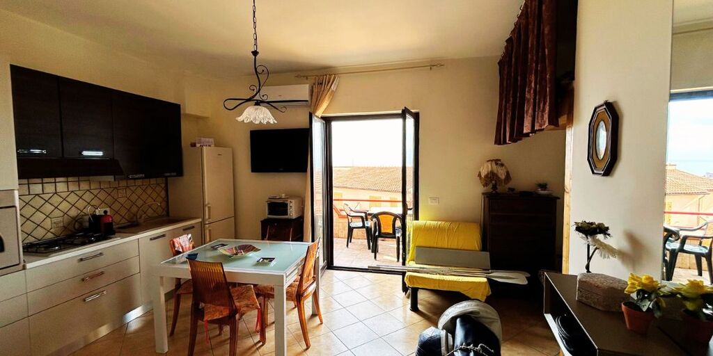 For sale cozy two-room apartment of 50m2, located on the first floor, in a beautiful location of Scalea, in Baia del Carpino. The apartment, completely renovated, offers views of the sea and the surrounding hills. It is equipped with a private solarium with outdoor shower, ideal for enjoying the tranquility of the place. The property consists of an independent entrance, a bright living room with kitchenette, a bedroom, a bathroom and a balcony overlooking the sea, which offers moments of relaxation in the fresh air. The distance from the sea is about 1.5 km, which makes the area quiet, while you can easily reach the beach. An ideal opportunity for those looking for a renovated apartment in a picturesque and quiet area, but close to the main services.