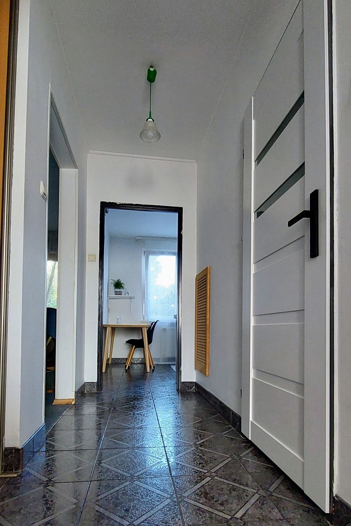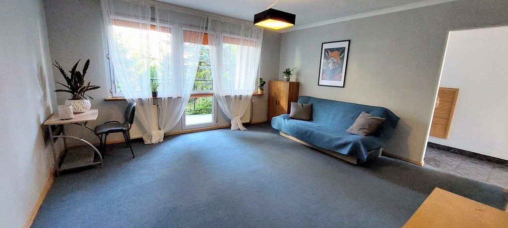 Two-room apartment with an area of 55.85 m2 with a garden located in a very quiet part of Przecław, in the Zielone Pole estate on the high ground floor of a low brick building built in 1997. Cooperative ownership right to the premises without a land and mortgage register. Area breakdown: living room 21.74 m2, bedroom 13.69 m2, kitchen with window 8.33 m2, bathroom 4.78 m2, hallway 7.31 m2. From the largest room exit to the balcony and further to the garden with an area of approximately 60 m2. In the kitchen there is furniture, in the bathroom there is a shower cubicle, sink, space for a washing machine, toilet together. Heated with a two-circuit gas furnace. Monthly rent, which includes advances for water, sewage collection and garbage collection – PLN 410. Last year, for two people, electricity bills averaged PLN 60 per month, while gas averaged PLN 152 per month (in summer approx. PLN 80/month, in winter an average of PLN 247/month). Bills available for inspection. The premises include a storage room. Nearby there is a school, kindergarten, nursery, numerous grocery stores and service/catering points.