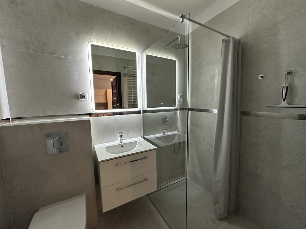 The apartment is tastefully and modernly furnished. The exposure from the west side makes the apartment very sunny and warm. Balcony on the side of the inner yard – you can not hear the sounds of the street.