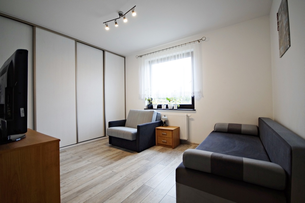 For sale Detached house with a separate 3-room apartment and a 2-bay garage building in the Goleniów area. The property is aimed at people who value peace and quiet, and at the same time are looking for a property very close to the center of Goleniów The house is modernly furnished architecturally, with extensively used automation and improvements. Usable area 271.54 m2 Plot area 3203 m2 The house is spacious, open to a nicely landscaped garden with an exit to the terrace on the south side with an area of 20 m2. On the ground floor there is a large living room with an area of 32.88 m2, with a centrally placed fireplace. In the living room we have an open kitchen with an island, a bathroom with a shower cabin, a washbasin, a toilet and a 3-room apartment with a bathroom and a separate toilet with an independent separate entrance from the side of the building On the first floor there are 4 bedrooms, a bathroom with a bathtub, a laundry room, a toilet. From the living room there is a passage to the terrace to the garden. The garden is landscaped with trees and shrubs, and also has an automatic irrigation system. On the plot there is also a separate building with an area of 60 m2 – garage for 2 cars. Additional equipment: – Automatically closing blinds on the first floor in the bedrooms. – Eco-pea coal stove with an additional tank for hot water. – Instant hot water in all sinks, bathtub and shower. – Photovoltaic panels placed on a separate building – garage. Areas of individual rooms: GROUND FLOOR: – living room with exit to the garden with an area of – 32.88 m² – kitchen – 9.96 m2; – pantry – 2.05 m2 – bathroom 6.06 m2 – room – 11.16 m2 – utility room – boiler room – 9.19 m2 – vestibule – 8.10 m2 – hall – 9.40 m2 ATTIC: – bedroom – 26.41 m2 – wardrobe – 7.80 m2 – bathroom – 6.62 m2 – laundry room – 2.81 m2 – room – 7.12 m2 – room – 17.48 m2 – room – 21.80 m2 – hall – 19.41 m2 3-room apartment with an independent entrance from the side of the building with an area of Usable area 72.76 m2 : – living room – 20.53 m2 – kitchen – 7.65 m2 – pantry – 1.73 m2 – toilet – 1.84 m2 – room – 13.03 m2, – room – 9.36 m2 – bathroom – 5.27 m2 – wardrobe – 2.88 m2 – vestibule – 3.24 m2 – hall 7.23 m2 Best regards and I invite you to the presentation.