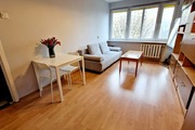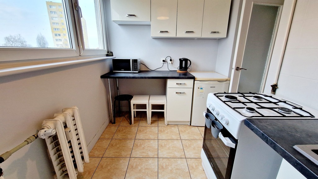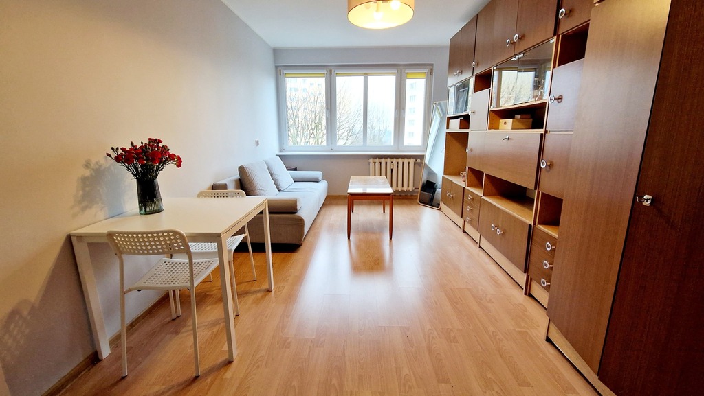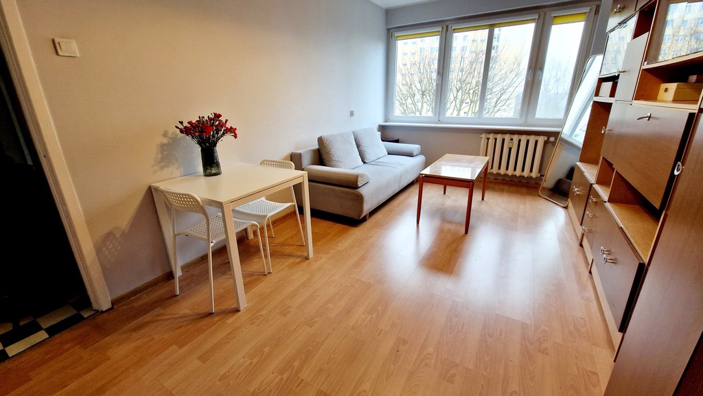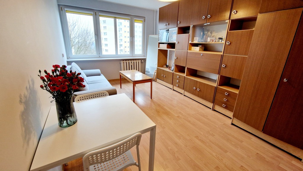 For rent a studio apartment in the Kaliny estate in a high block with an elevator. The 30 m2 apartment consists of a large room (bright and sunny), a separate bright kitchen, a bathroom with a bathtub, a toilet and a hall. Low maintenance costs – a fee for the Owner of PLN 1,500, in addition to this, the rent to the cooperative is PLN 420 (heating, hot and cold water, garbage), electricity and gas according to meters. Offer for a single or a couple for a longer period of time. Monthly deposit. The apartment is well-kept, clean, well-connected with the entire city. Nearby public transport stops, shops, numerous parking spaces.