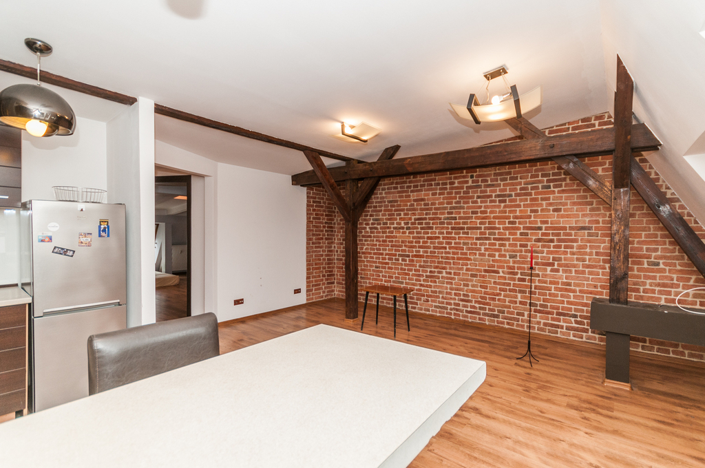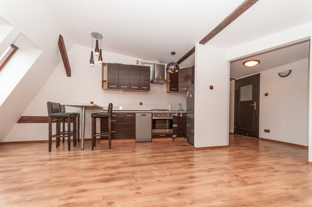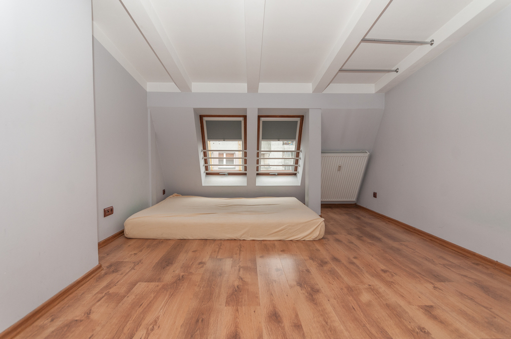 Very nice adaptation of the attic, 2 rooms in the center of Szczecin. Living room with kitchenette, bedroom, bathroom with toilet and wardrobe. The apartment is unfurnished. The price is 1800 PLN plus the rent to the housing community in the amount of PLN 410 and the renovation fund PLN 90, additional fees include: electricity (about PLN 150), gas (needed to heat the water) and water. District heating is included in the rent. Hot water is heated by a gas flow boiler. Very good location, proximity to transport hubs, shops and schools. I recommend and invite you to the presentation! ATTENTION! The property is available from 07/21/2022.
