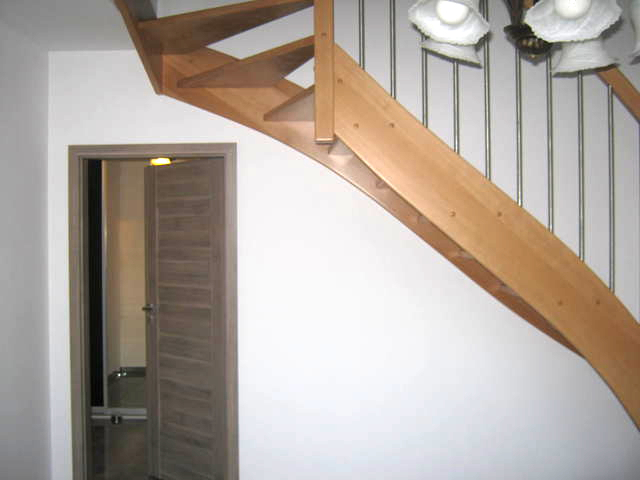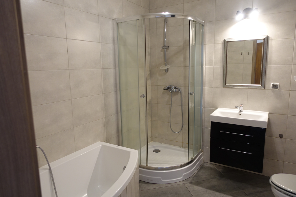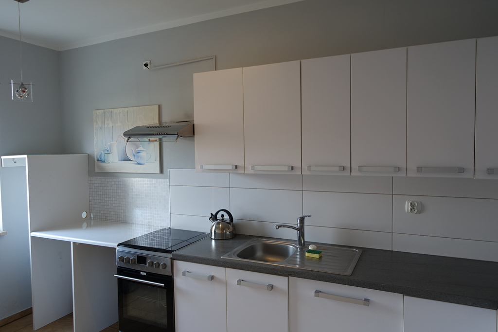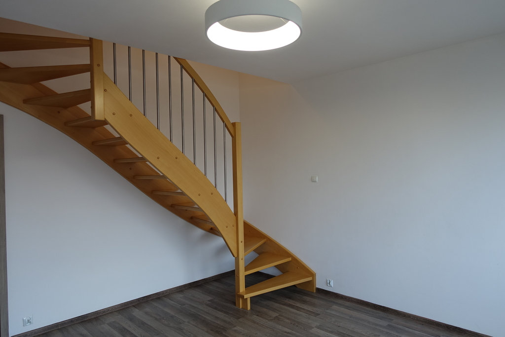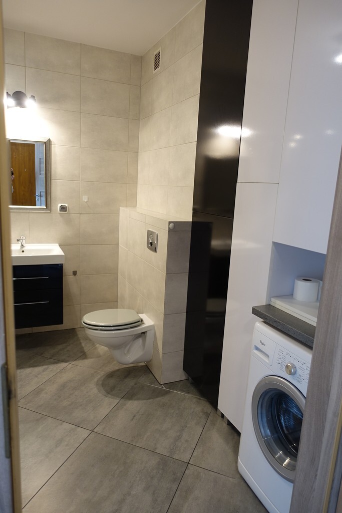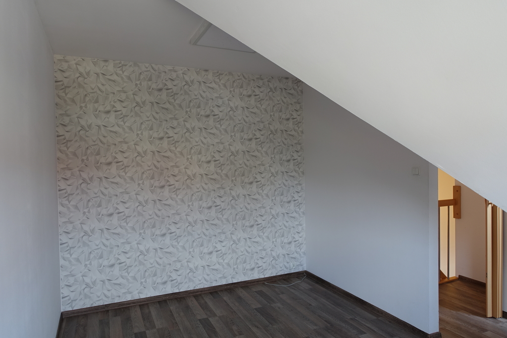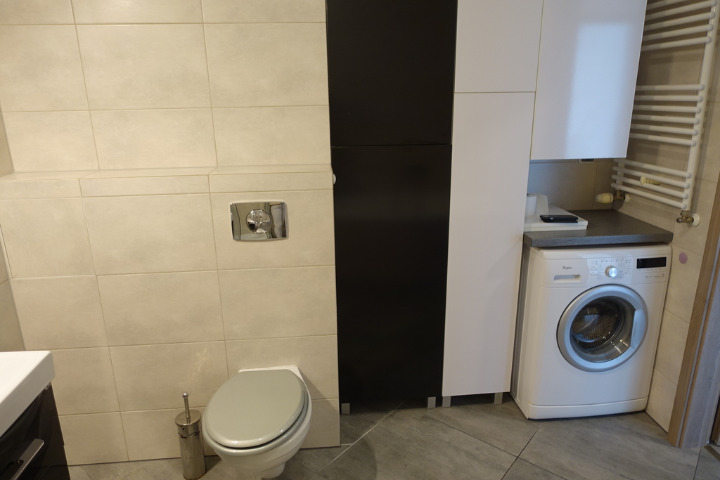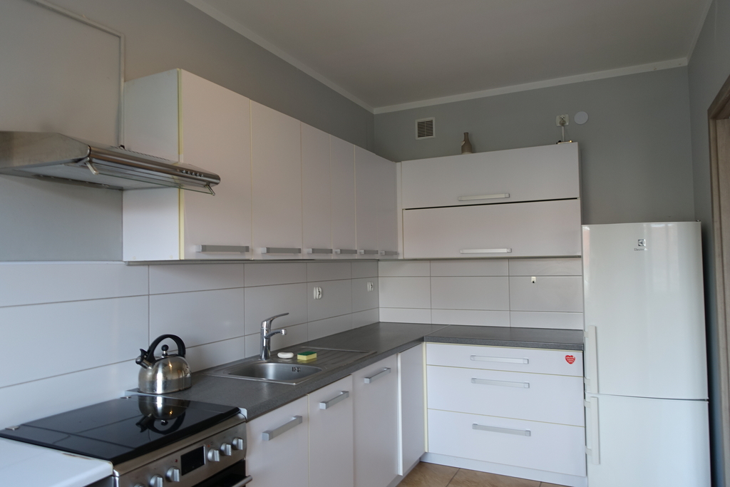 4-room apartment, two-level with a usable area of 73.4 m2 (total floor area 80 m2) 1st and 2nd floor of a low multi-family building in Przecław. 1st LEVEL: living room 17.3 m2 connected to the kitchen 11.6 m2 bedroom 14.5 m2 – which has been divided into 2 separate rooms, bathroom 7.6 m2. From the living room exit to the balcony approx. 4 m2 and entrance by stairs to the 2nd level. 2nd LEVEL: large bedroom with wardrobe with an area of 17.6 m2. On the floor panels in the rooms and polished stoneware in the rest of the apartment. Walls in a smooth finish painted white. Marble window sills, PVC and roof windows at the top, nice internal and anti-burglary external doors. Kitchen fitted with custom-made furniture with household appliances (fridge, gas stove, extractor hood, dishwasher). In the hall a wardrobe of the Komandor type. Bathroom in tiles and terracotta with shower, washbasin and toilet. Gas heating. Rent 590 PLN for 4 people.