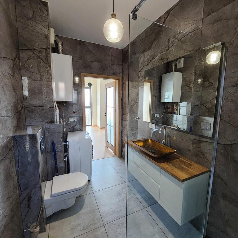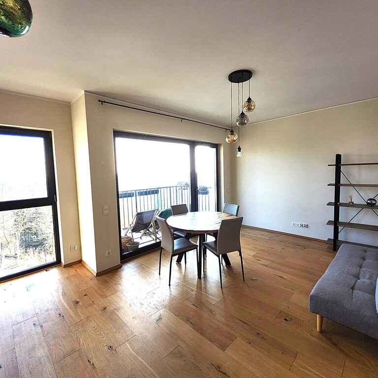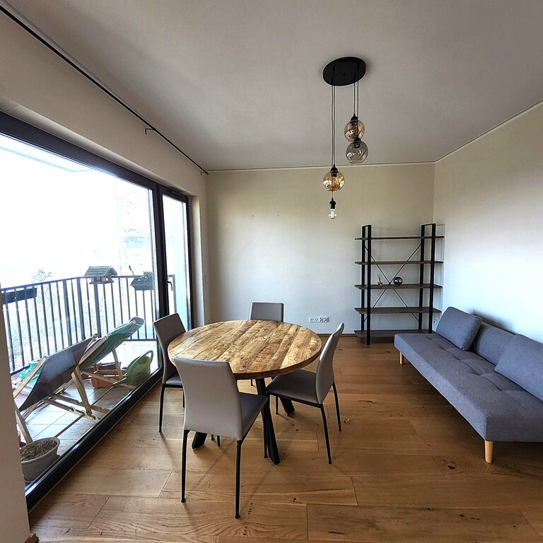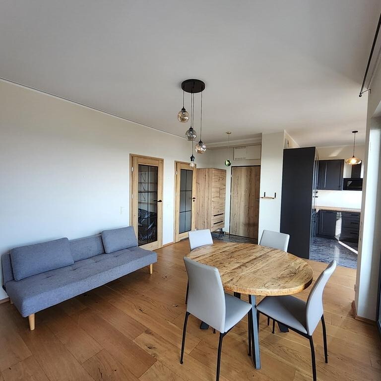 For rent a 2-room apartment located on the 2nd floor of a 3-storey block. On the surface of approx. 45m2 there is: approx. 14m2 living room with separate kitchenette, approx. 13m2 bedroom, approx. 6m2 bathroom and kitchen. From the living room there is an exit to approx. 5 m2 balcony. The kitchen is equipped with household appliances including: hob, hood, fridge, dishwasher, stove. In the bedroom there is a spacious wardrobe type commander. Bathroom with a window, equipped with a shower, washbasin, toilet, ladder radiator and washer dryer. Triple-glazed windows, underfloor heating in the entire apartment. Rent is PLN 602, additionally payable electricity and gas. Heating and hot water from a 2-circuit gas furnace. In winter for 2 people the largest bill was PLN 414 and in summer these are amounts up to PLN 100. The area is fenced, closed with a gate. The apartment includes a parking space. I recommend and invite you to the presentation.
