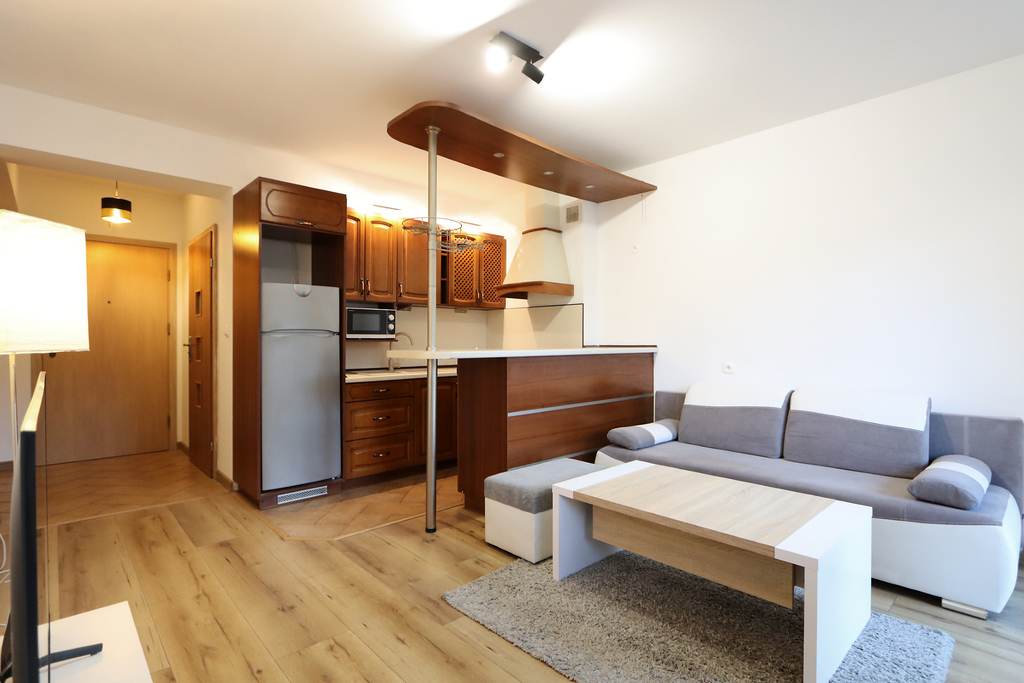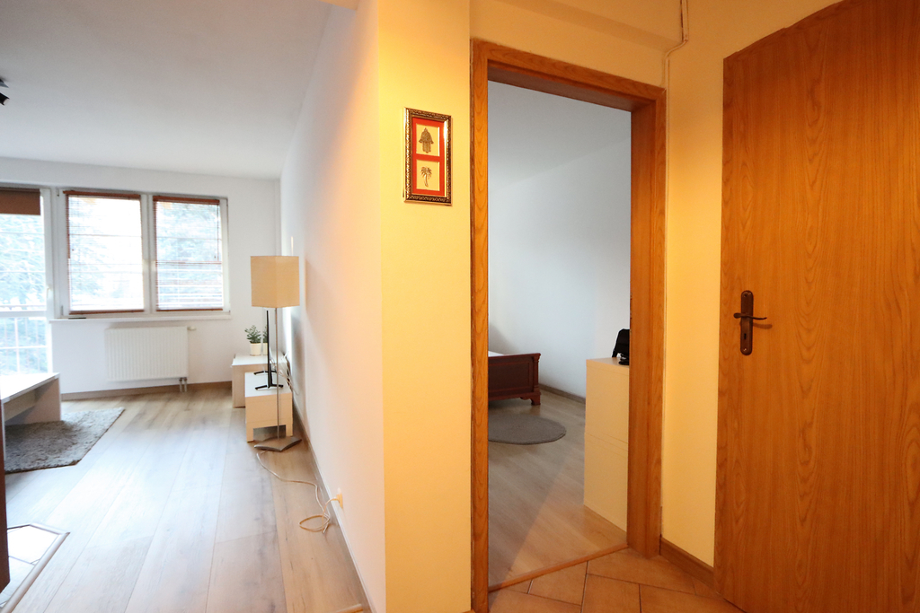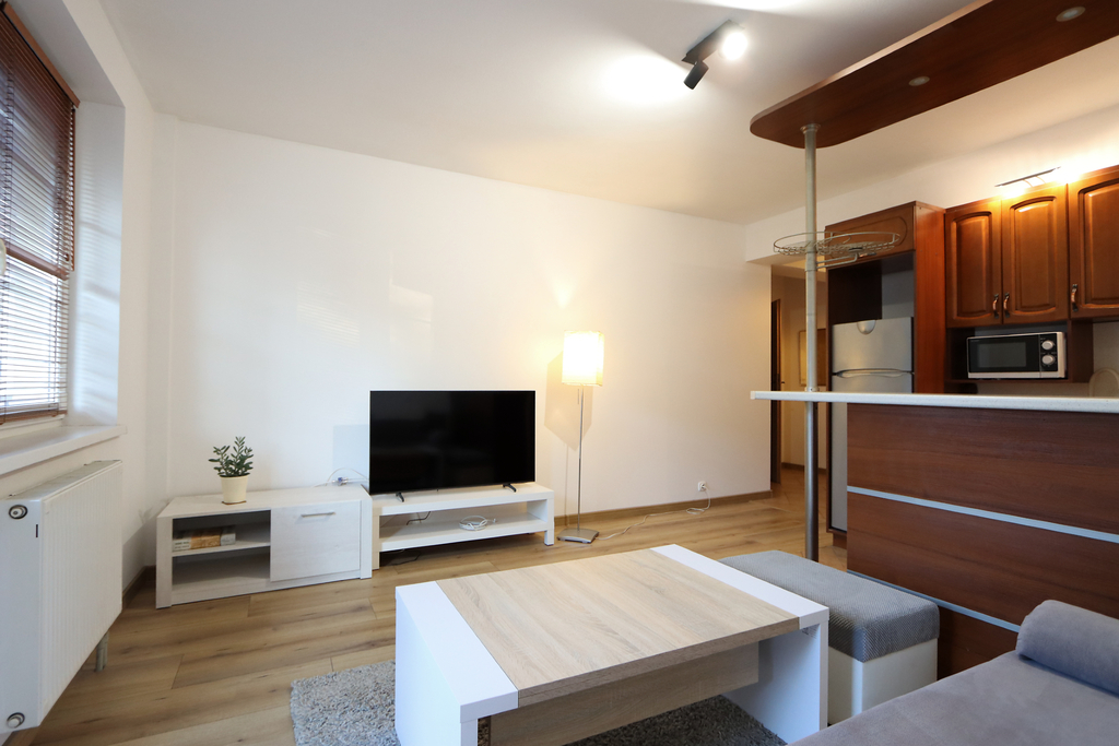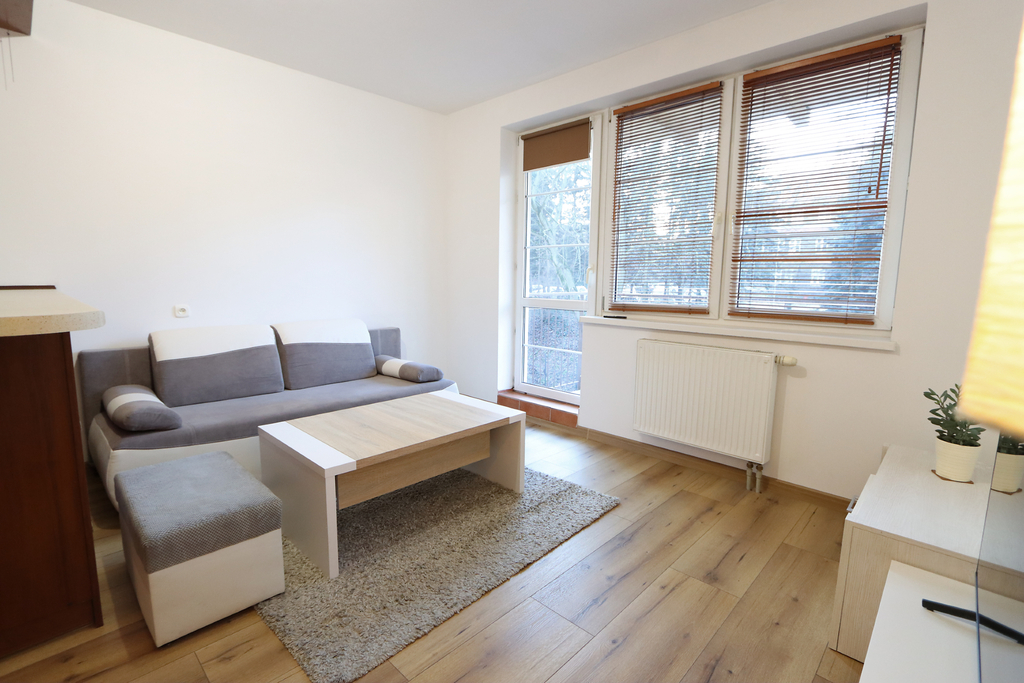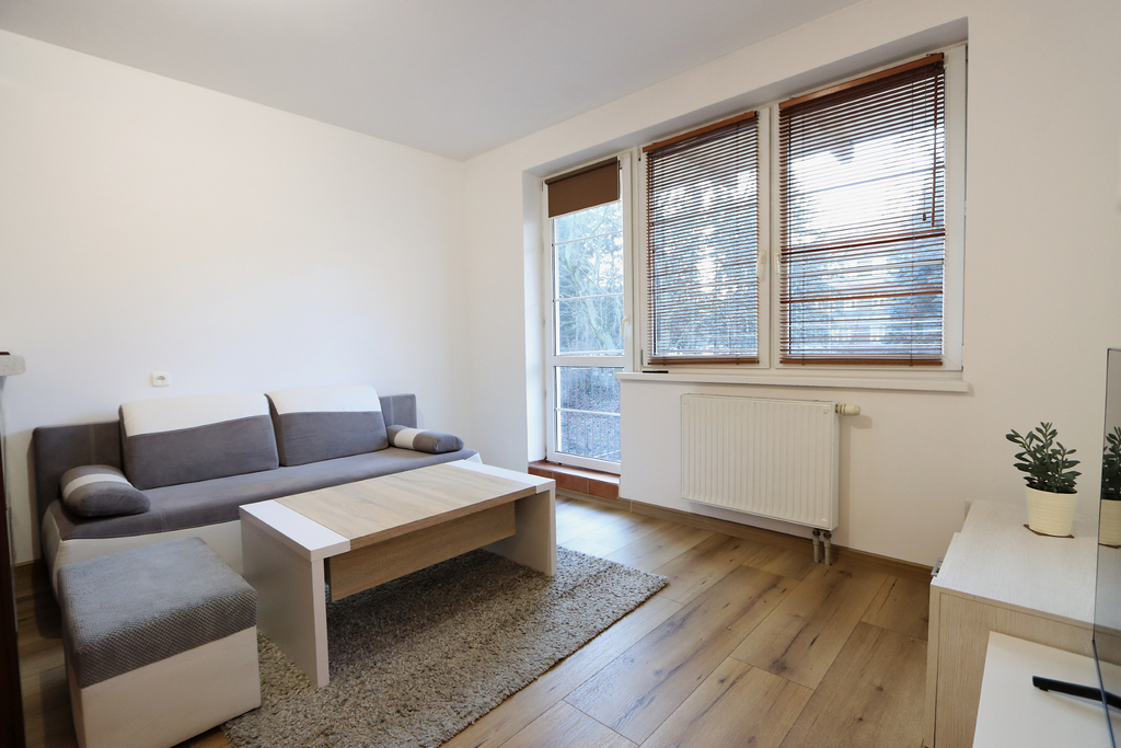** Center, furnished 2 rooms with balcony and wardrobe. Parking spaces for residents ** The offer for rent includes a spacious 2-room apartment located on the 2nd floor of a 4-storey, low-rise building from 2002. The apartment includes a parking space in a closed parking lot that is available to residents. Apartment available from March 31. Only Tenants without animals. The area of 42.05 m2 consists of: – living room with kitchenette with exit to the balcony, – bedroom; – wardrobe; – bathroom; – corridor. The apartment is equipped with basic furniture, household appliances including a new washing machine and a new TV in the living room. Smooth and painted walls, high-abrasion panels were placed in the living room, roller blinds were installed in the windows. Living room with kitchenette with exit to a classic balcony overlooking the greenery. The balcony area successfully allows you to insert a table and terrace chairs. In the living room there is a comfortable sofa, armchair, table and shelves. A big advantage of the offer is a separate wardrobe with built-in shelves for clothes and shoes. The bedroom is very well-arranged, equipped with a large bedroom bed and a desk with an armchair. Bathroom with a built-in bathtub, sink, toilet and washing machine. The rent to the manager ranges from PLN 350.00 in the summer to PLN 520 in the winter (the rent includes water consumption, heating and hot water from SEC, renovation fund, waste disposal). An additional advantage of the offer is the possibility of using a parking space located in the building's parking lot. Access-controlled parking intended for residents of the building. A deposit of PLN 3,000.00 is required. The location is ideal for people who value proximity to infrastructure, nearby tram stops, food outlets, gym, Turzyn Shopping Center, Żabka, pharmacies, etc. About a 5-minute walk to the Jordanowski Garden. I highly recommend and invite you to the presentation. EXCLUSIVE.