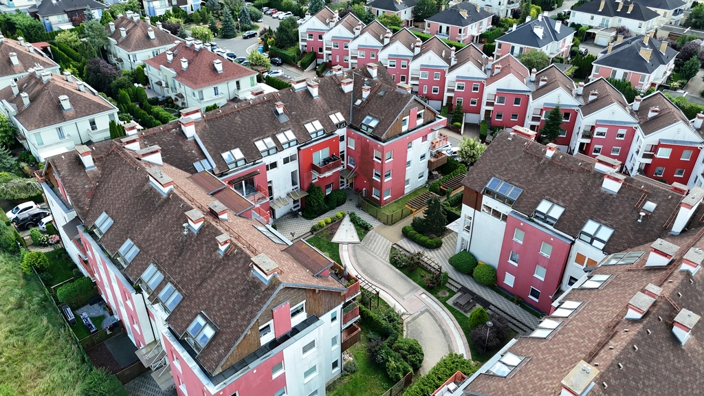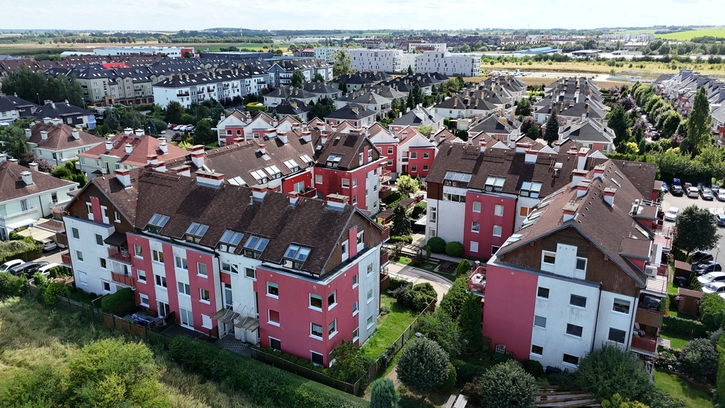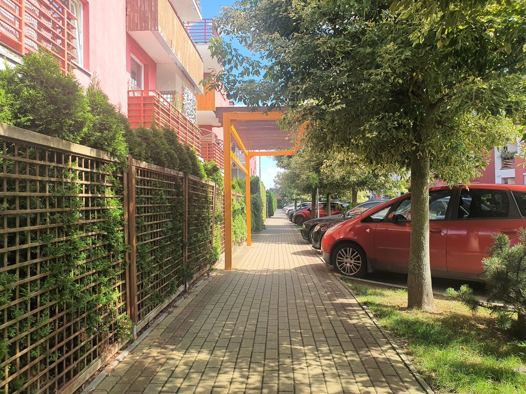 The Różane housing estate located in Warzymice near Szczecin is a well-kept space in a quiet and green area. The estate is safe and monitored, and a gardener takes care of the greenery and rose bushes. There are numerous public parking spaces on the estate. A drive to the Center, which is 7 km away, takes 15 minutes. Nearby there is a Netto store (750 m), Żabka (600 m), CH Czerwona Torebka (1.4 km), a parcel locker. Buses 241 and 243 run from Warzymice, which provide an easy way to get to the center. A bit further there is Biedronka, the Municipal Sports and Recreation Center with a swimming pool, fitness club and gym, a clinic, Lidl, and local stores.
