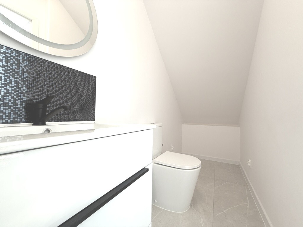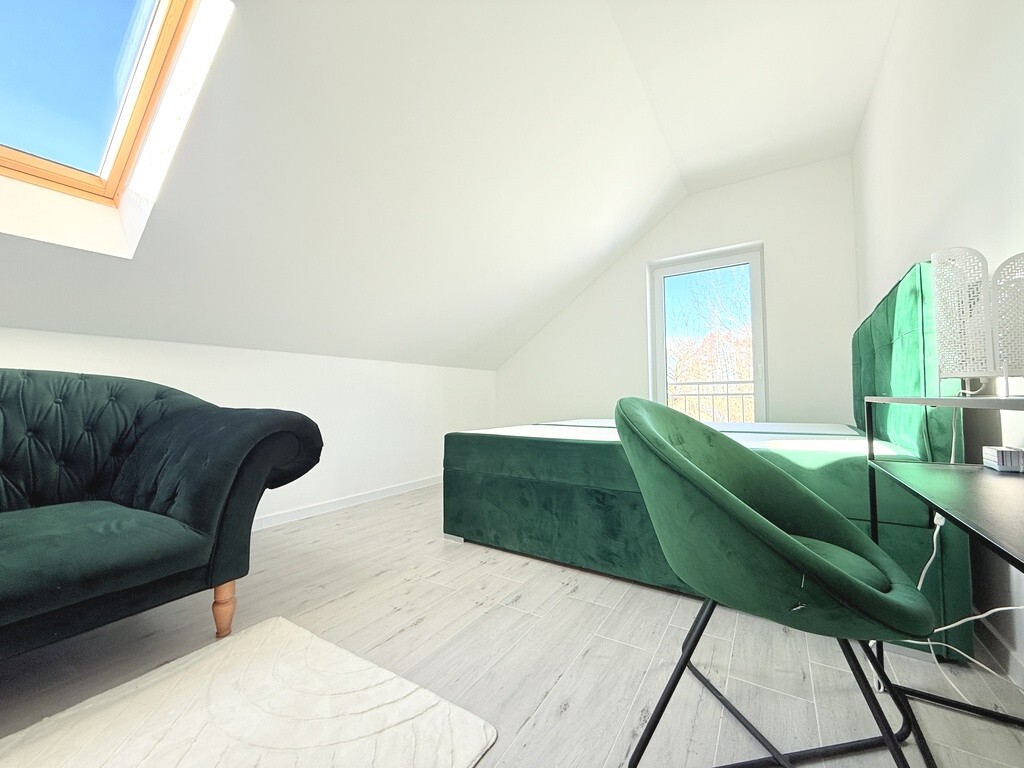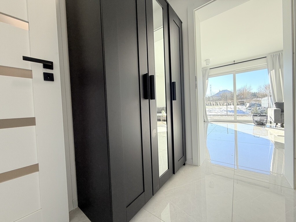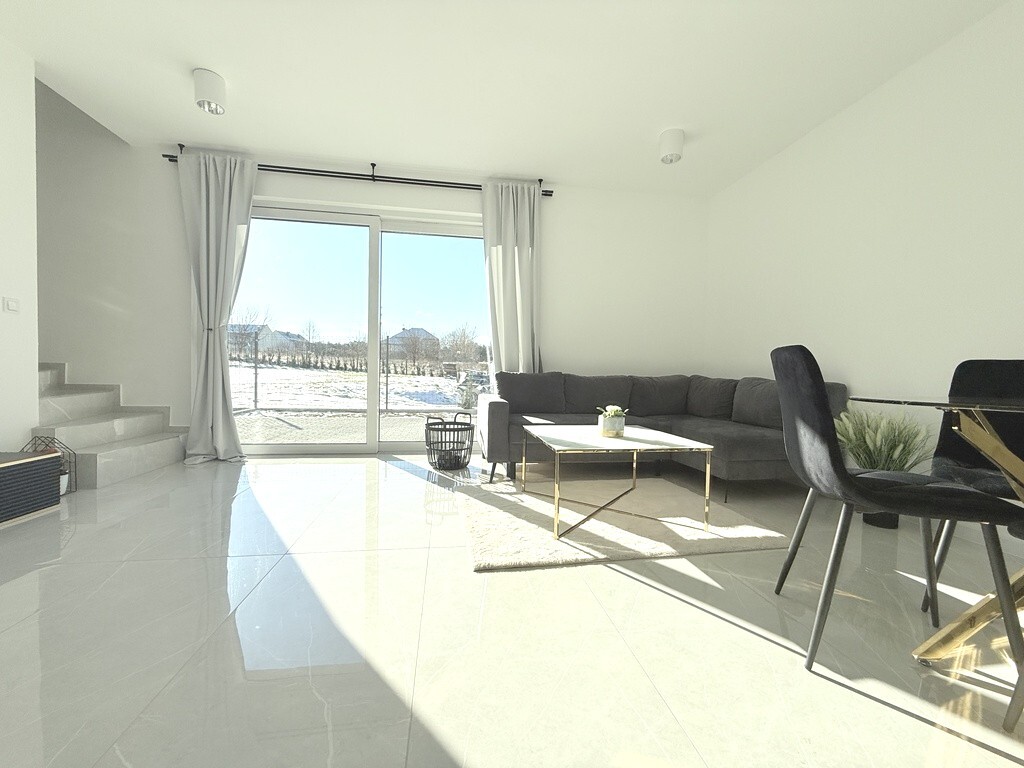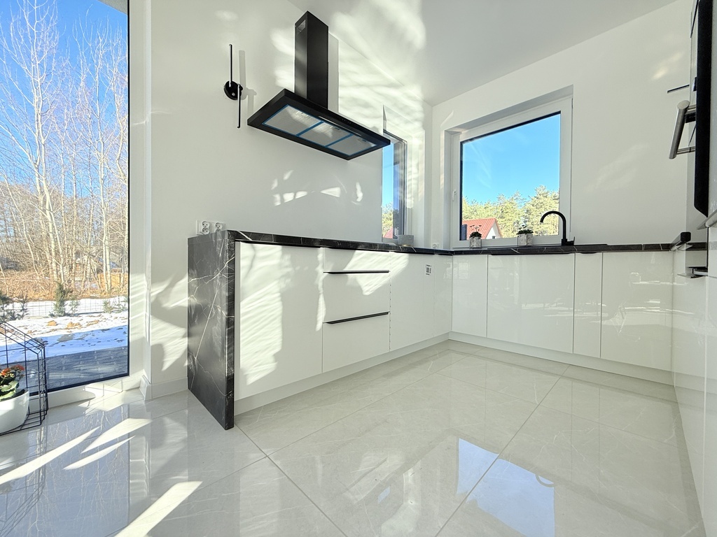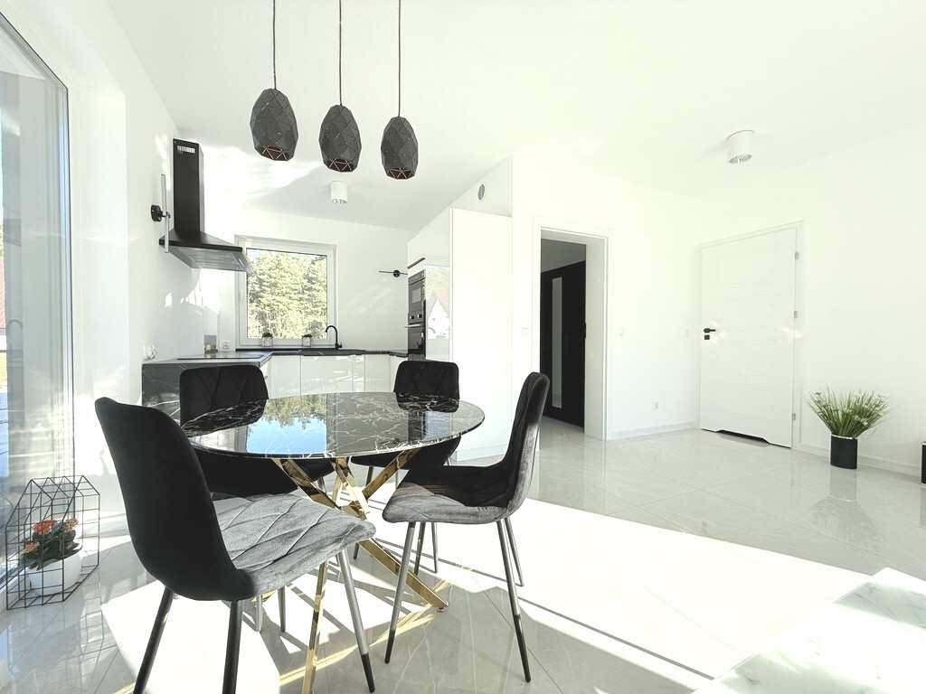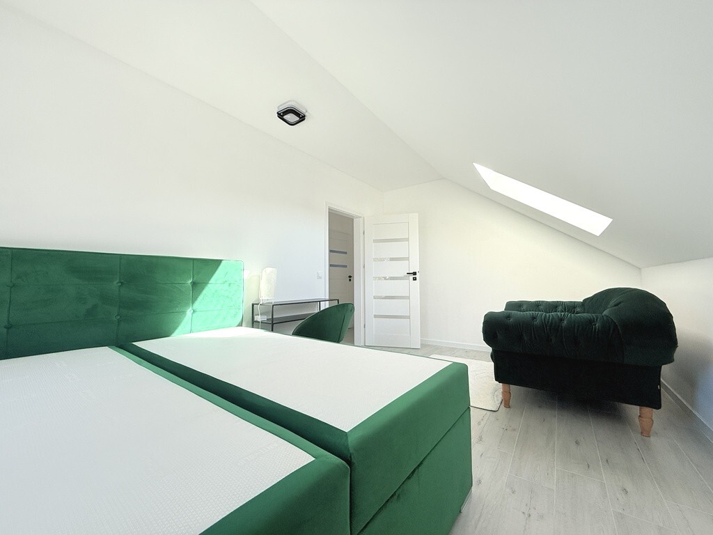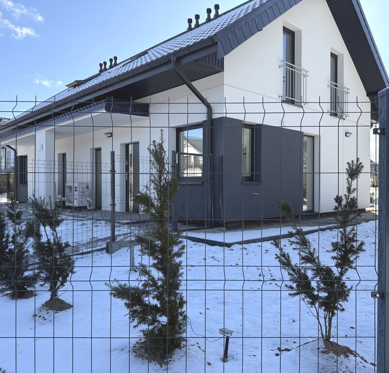 Modernly finished property, ready to move in! The offer for sale of the property is a single-family house with two premises – the offer concerns each half separately. An ideal place for people who value peace and green areas while being close to Szczecin and Police. The property was designed in accordance with the project "House in Borówki (R2N)" Modern finish and large glazing give the simple body an attractive appearance. GROUND FLOOR 1. Vestibule 3.65 m2 2. Boiler room/laundry room 4.41 m2 3. Toilet 2.69 m2 (3.96 m2) 4. Stairs 3.39 m2 5. Living room + Dining room 22.23 m2 6. Kitchen 6.58 m2 ATTIC 1. Corridor 4.19 m2 2. Room 12.04 m2 (16.52 m2) 3. Room 8.10 m2 (10.93 m2) 4. Bathroom 4.00m2 (6.59 m2) In front of the building 2 parking spaces for exclusive use. Advantages of the property: – Modern turnkey finish with high quality materials. Fully furnished and equipped kitchen, bathrooms and furniture (it is possible to buy without movable furniture) -Fiber optics, -Underfloor heating throughout the house, -Poured ceilings, -Land development. Heating with a heat pump – a modern, ecological solution that significantly reduces operating costs, while ensuring the highest level of thermal comfort throughout the year. In order to familiarize yourself with the offer, please contact me.
