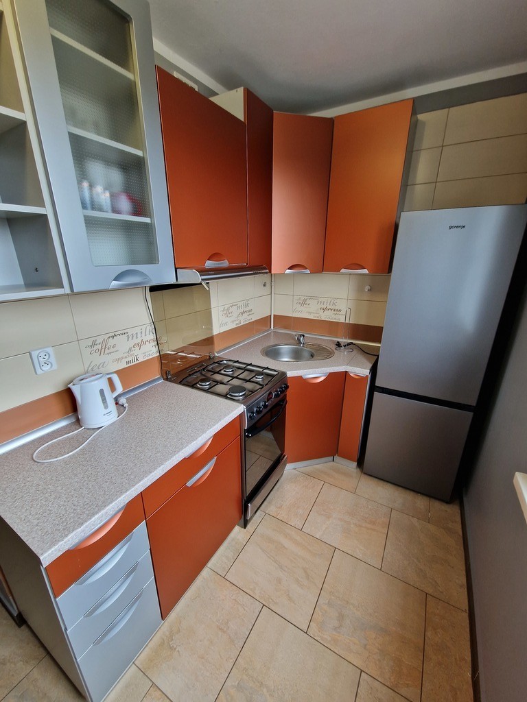 For rent immediately a large studio apartment on the Słoneczne housing estate at Turkusowa Street. The apartment with an area of 43.30m2 is located on the 3rd floor of a skyscraper from the 70s. The building is insulated, with a renovated staircase and elevator. Heating and hot water from the city network (gas only for the cooker). A quiet side street and at the same time a good connection with the left bank and the right bank of Szczecin. The apartment is furnished as in the pictures. Living room about 17m2 with a balcony grille, panels on the floor. Kitchen furnished and equipped (oven, fridge – new). The layout of the apartment allowed for the creation of a small dining room by the kitchen. Large bathroom, with a bathtub, toilet and washbasin. In the corridor there is a built-in wardrobe that will hold a lot of things. Tiles in the corridor and in the kitchen. Additionally, the apartment includes a basement of about 3m2. Additional costs include: electricity, gas (stove), rent to the housing cooperative (520 PLN) with advances for heating and water, and Internet if the tenant needs it. Deposit 3000 PLN. We have keys for rent immediately. We invite you