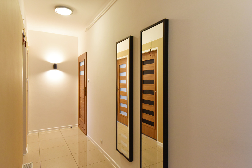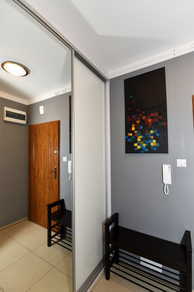 - Hall: functional space between the external door and the interior of the apartment with a very large built-in wardrobe, providing thermal and acoustic insulation