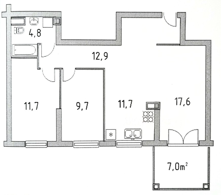 - Apartment area: 70.1 m² (including storage room: 1.70 m²)