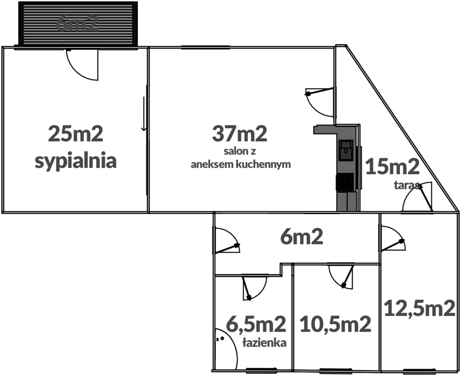 – spacious living room with open kitchen 37m2, with access to the terrace. Large windows perfectly illuminate the interior, thanks to which there is a cozy but energetic atmosphere. Kitchen with window, fully equipped with new household appliances (oven, electric hob, fridge, dishwasher),