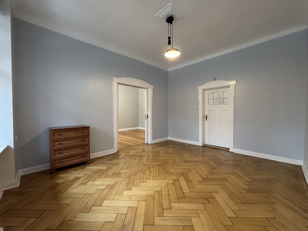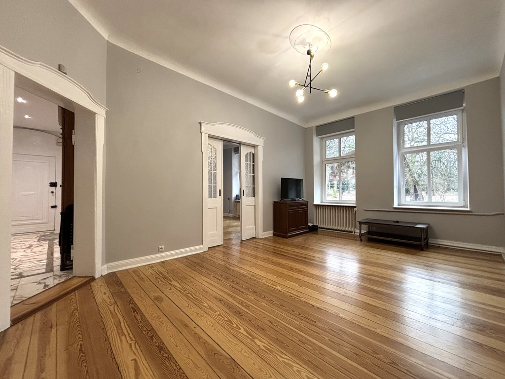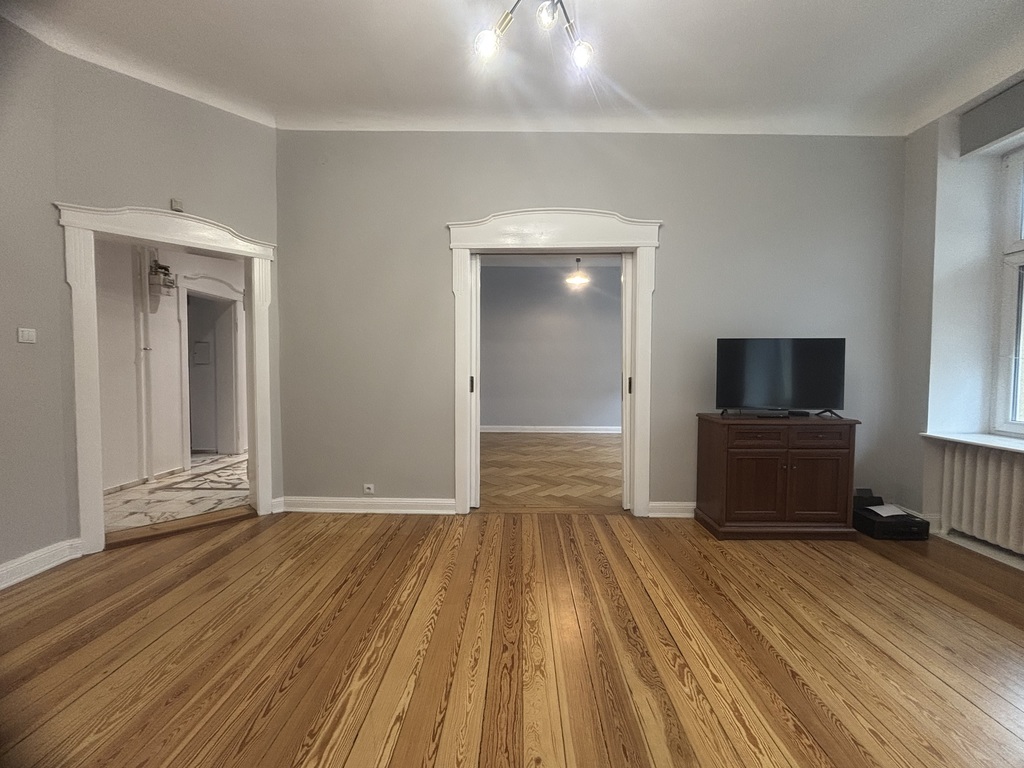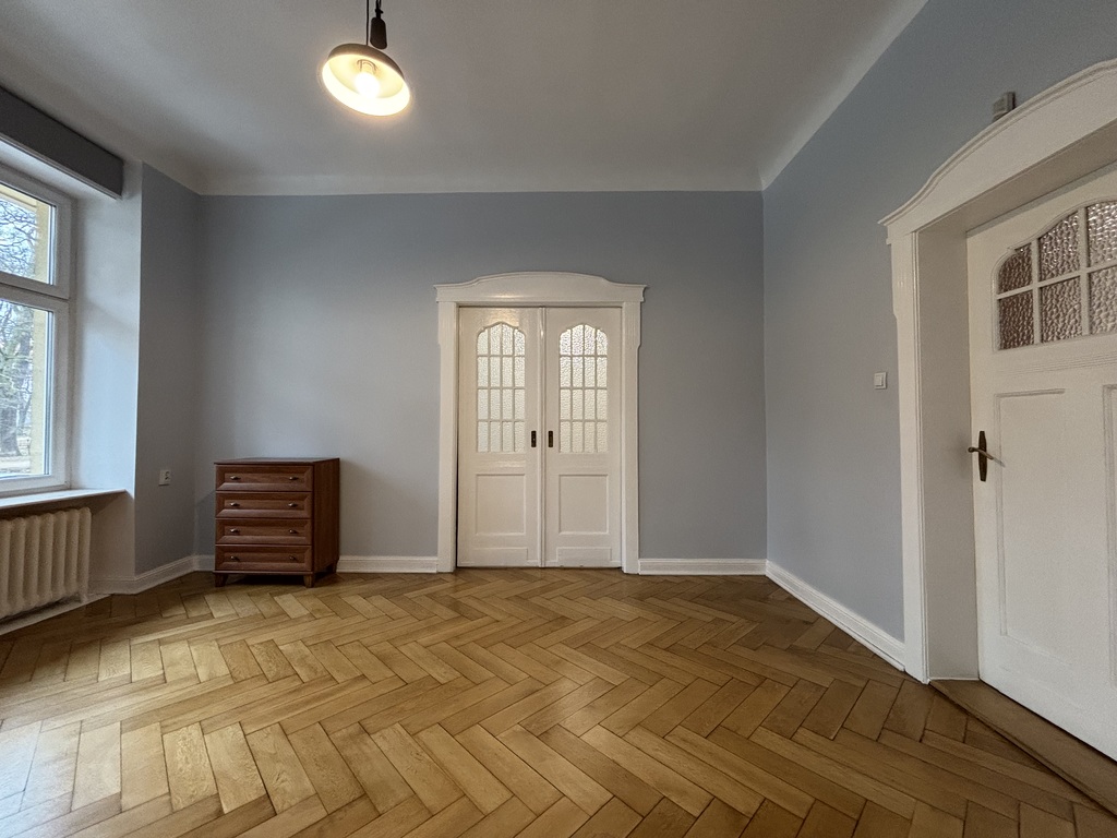 The offer for sale of an apartment located at Żeromski Park, on the ground floor of a tenement house. The property with an area of 90 m2 consists of: – room, – room, – room, – separate kitchen, – bathroom with toilet, – corridor. The property is in ready-to-move-in condition. Smoothed and painted walls. Original wooden floorboards and parquet on the floors. Terracotta tiles on the floor in the kitchen, corridor and bathroom areas. The property has preserved original wooden door joinery. Beautiful double doors between the two rooms. In the kitchen, there is a built-in kitchen with household appliances. The bathroom is equipped with a toilet, bathtub and shower. Two rooms have a beautiful view of Żeromski Park. Three rooms have a view of the green courtyard. Rent to the manager approx. PLN 1,200 with heating, cold water, maintenance of common areas, renovation fund, waste removal. Additionally, electricity and gas are paid. The tenement house is beautifully maintained. The staircase is very well-kept, with preserved elements in the form of decorative stucco. In the nearest location, apart from Żeromski Park, there are Wały Chrobrego, Łasztwonia, shops, public transport stops, schools. Parking spaces by the building. EXCLUSIVE