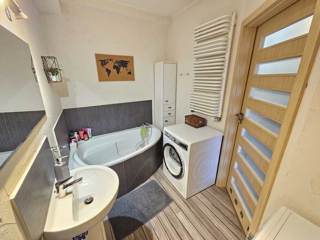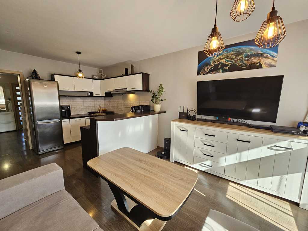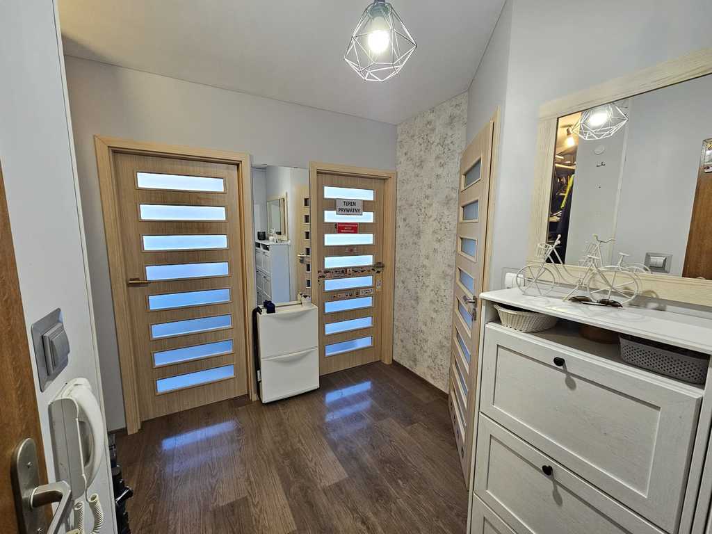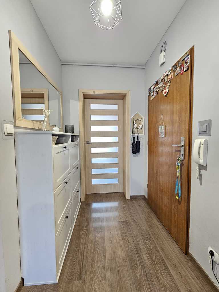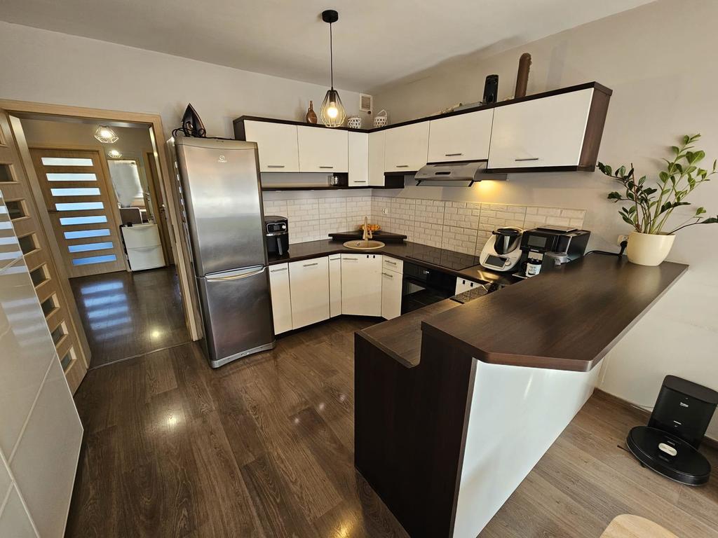 3-room apartment with an area of 54.71m2 on the ground floor of a multi-family building from 2009 in Warszewo. Apartment in a higher standard with two gardens of 58m2 and 15m2. Together with the premises, you can buy a closed garage located in the garage hall under the building with an area of 16.58m2, payable additionally PLN 100,000. The purchase is not obligatory due to a separate land and mortgage register. The price of both properties is PLN 748,000. The property consists of: * a large room with a kitchenette with an area of 20m2, with an exit to a smaller garden * two rooms with an area of 11 and 10m2, one of them with an exit to a larger garden with a paved terrace * bathroom with a bathtub, toilet and washbasin * hall with a recess for a wardrobe In the rooms on the floor panels. Bathroom and toilet in tiles and terracotta. In the kitchen with a bar function, custom-made furniture with full equipment with household appliances (dishwasher, fridge, induction hob, oven, hood). Smooth walls and painted in pastel colors. Wooden windows in good condition. Rent in the amount of PLN 850, with the consumption of media for a family of 4. Heating and hot water from the city network. A lot of public parking spaces by the building. Location very close to Żabka, Chata Polska, Netto stores. Very convenient access to the center (10 minutes by car to Galaxy) and the clinic. Bus stop only 100m, close to Primary School No. 7, nursery and kindergarten and Puszcza Wkrzańska. Numerous paths and bicycle routes nearby are conducive to active spending of free time. Offer worthy of interest especially for families. Date of issue to be agreed. Price negotiable.