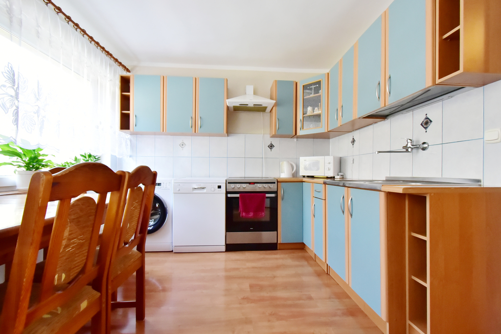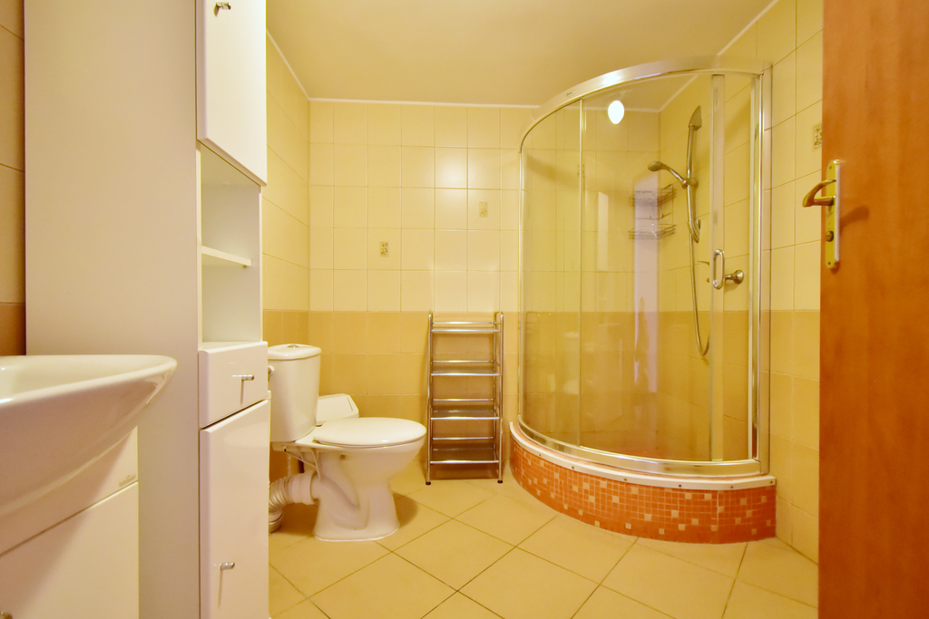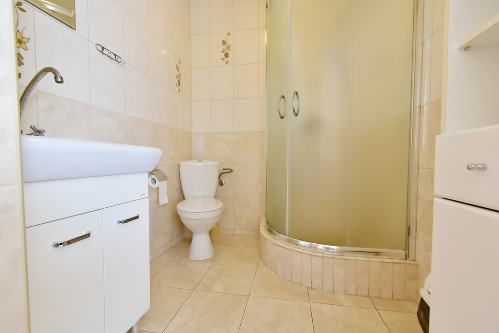 NEW LOWER PRICE! A semi-detached house for sale in Wisełka, ready for rent in the coming season. Possibility of release at short notice! The property is located on a well-kept plot with an area of 511 m2. There are two garages on the property: approx. 13 m2 in the building and approx. 18 m2 externally. Additional parking space on the property. Total area of the house 194.63 m2/usable area 108.45 m2. Distance from the sea is about one kilometer (10 minutes on foot through the forest). The property consists of three levels: Level 0 (height 2.21 cm) with a separate entrance: – toilet – 1.43 m2 (on the floor), – 4 rooms approx. 14, 13, 10, 10 m2, – kitchenette 6 m2, – bathroom – approx. 5 m2, – boiler room – approx. 3 m2, – vestibules and corridor approx. 10 m2. Level 1 (entrance from the outside via stairs) with balcony and terrace (approx. 32 m2): – living room – approx. 27 m2 (can be converted into 2 rooms), – kitchen – approx. 13 m2, – bathroom – 3 m2, – vestibule and corridor – 14 m2. Level 2 (entrance from Level 1) with a balcony of approx. 15 m2: – 2 rooms approx. 23 and 13 m2, – 2 bathrooms approx. 3 and 4 m2, – vestibule and corridor approx. 7 m2. The house is well-kept and clean. Inside, the walls are smooth, all bathrooms are tiled and tiled. Electrics replaced in some rooms. The building's facade was partially completed. Solar panels were installed on the roof to heat water. Heating the house with a Die Dietrich oil furnace (about 6 years old) I invite you to a presentation. EXCLUSIVE