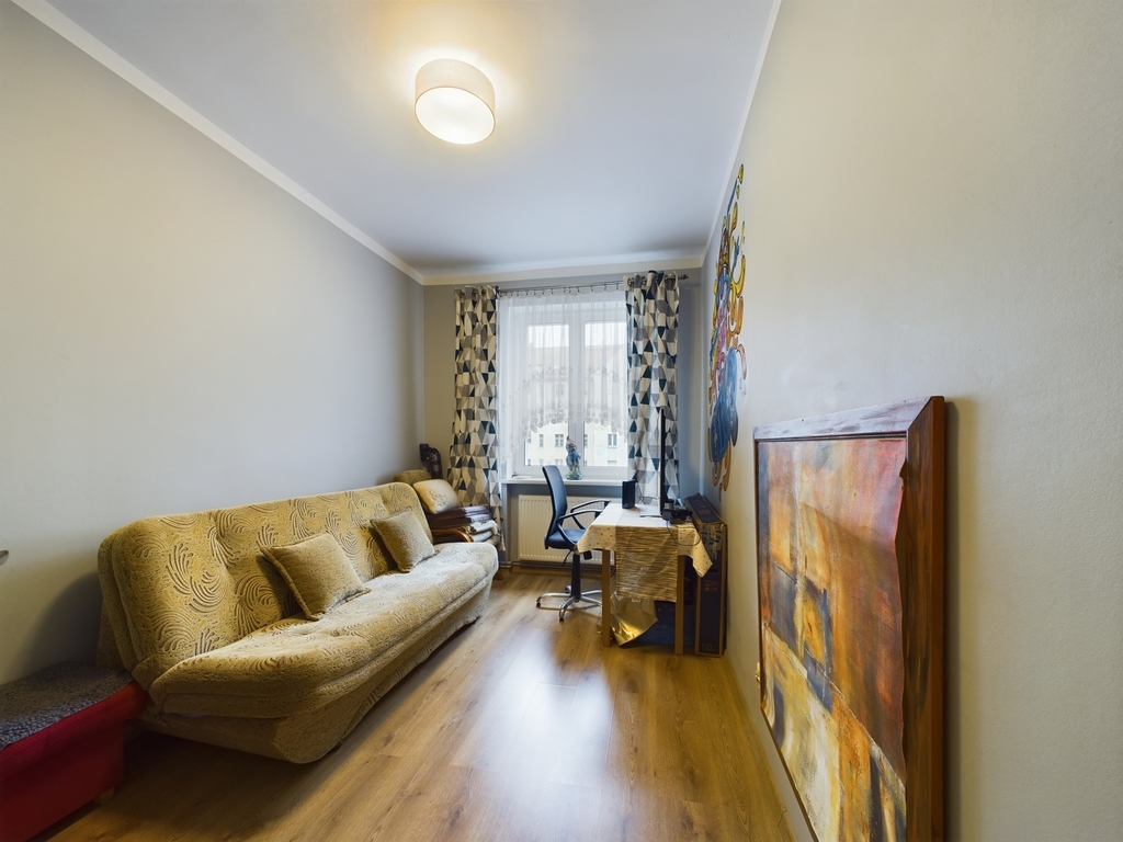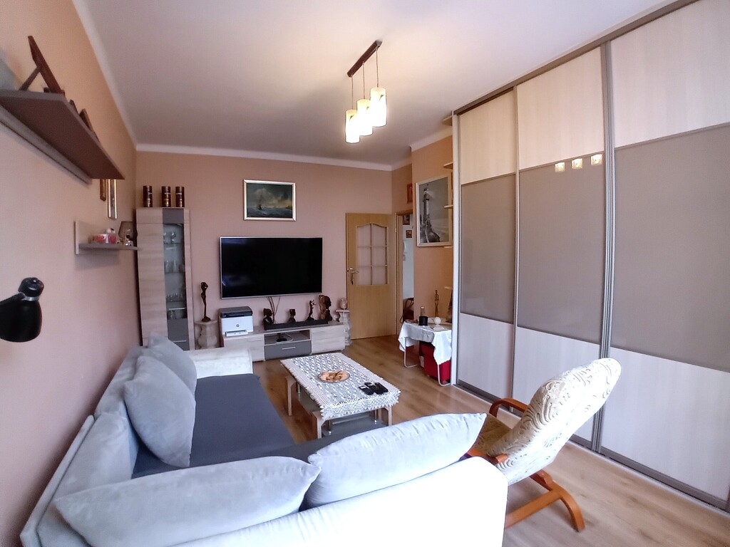We invite you to familiarize yourself with the offer of a two-room apartment with an area of approx. 52.90 m2, located in an attractive part of Pogodna. Legal status Cooperative ownership right to the premises without land and mortgage register and encumbrances. Apartment standard and layout of the rooms On the area of 52.90 m2 there are: living room, room, bathroom with toilet and shower cubicle, spacious kitchen and hallway. Additionally, a large basement with an area of over 20 m2 and access to a shared drying room located on the top floor. The apartment is in very good condition – it underwent a major renovation about 10 years ago, only the bathroom remains to be renovated. The price includes kitchen fittings with household appliances and fitted wardrobes in the living room and hallway. Heating and hot water from a very good quality gas storage furnace – systematically serviced. Fees The rent is PLN 550 for two people and includes: advances for cold water, renovation fund and operating fees. Additionally, gas approx. PLN 350 every two months and electricity according to consumption. Building The premises are located on the first floor of a three-story brick building built in the seventies. In 2008, the roof was refreshed, insulated and renovated. The staircase is in very good condition. The water and sewage risers have been replaced. Location Situated in a very attractive part of Pogodna. 6 minutes by car to the city center, close to convenient public transport. About 1 km to Kasprowicz Park, 1.5 km to the Pogoń Stadium. In the vicinity there is a shopping center, school, kindergarten, numerous shops. A great offer as an investment for rent! Offer only with us! I invite you to the presentation