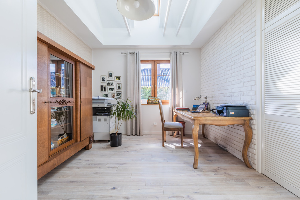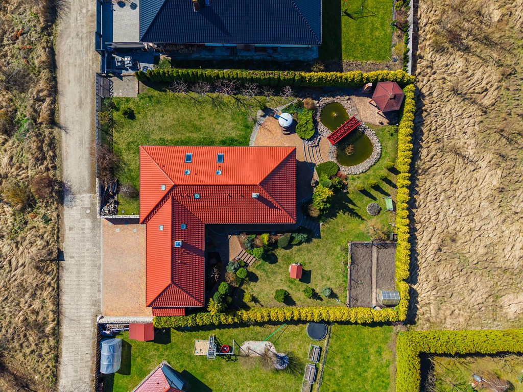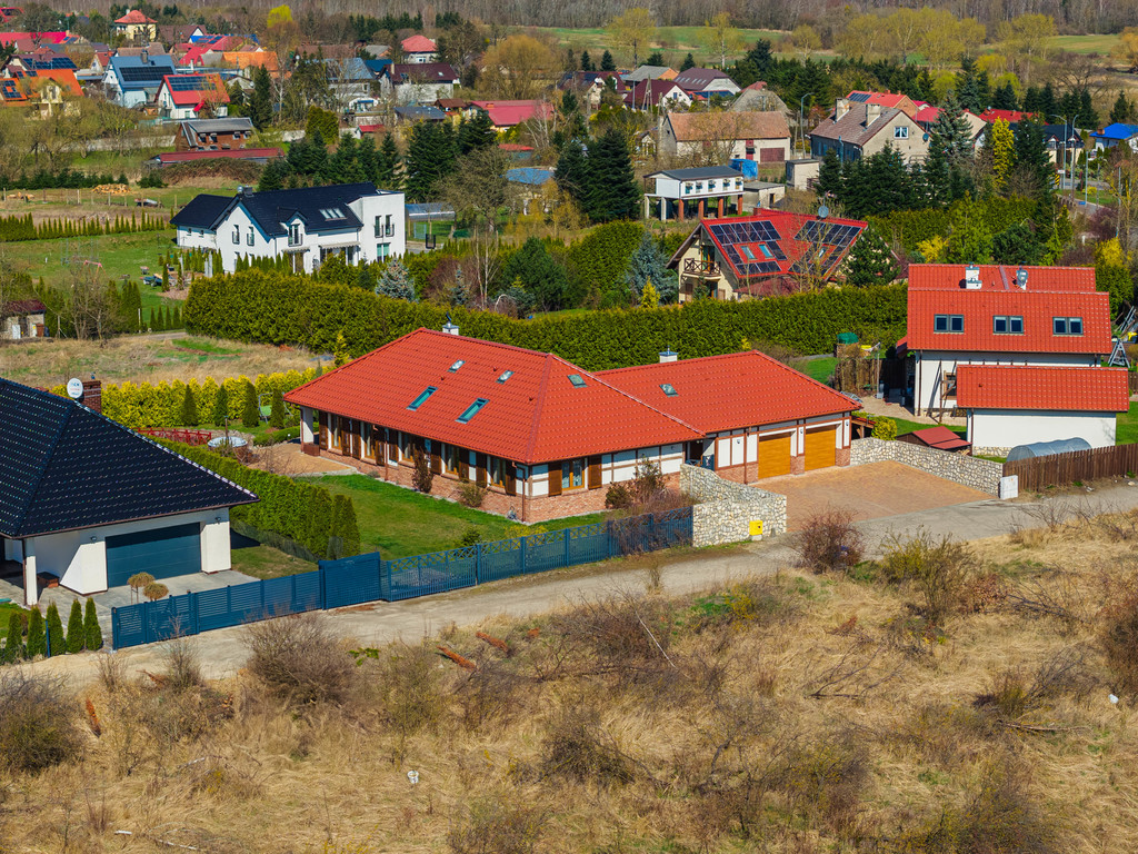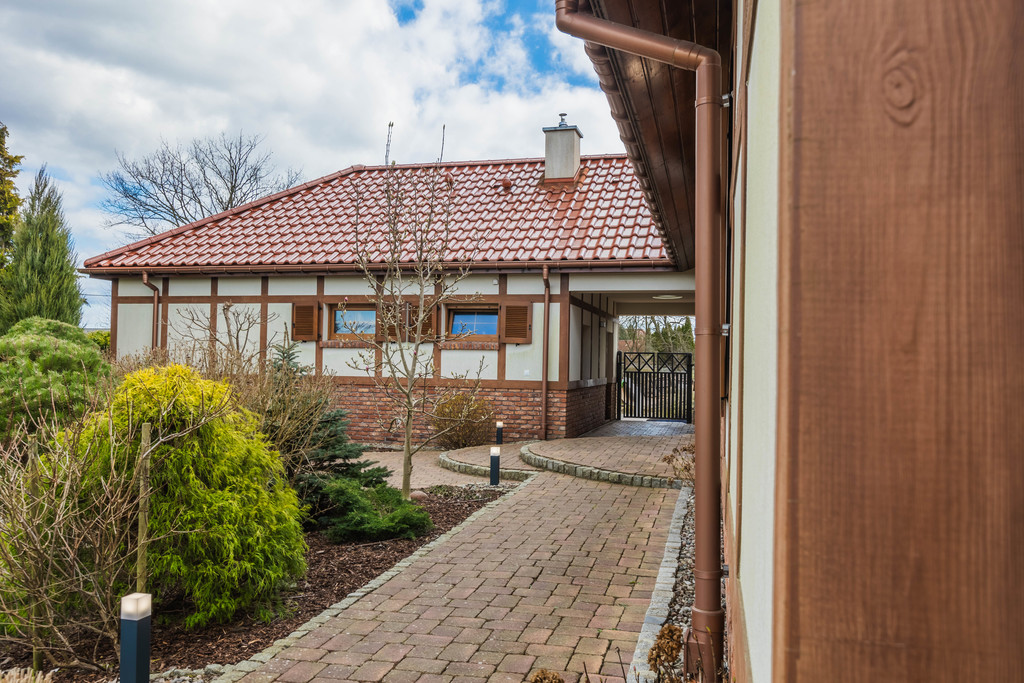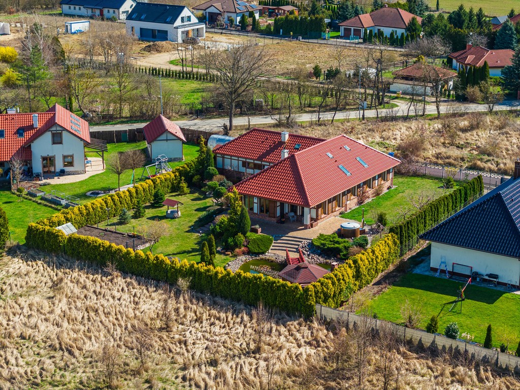 For sale a very nice, atmospheric detached single-storey house with an area of 183m2 including a 58m2 double garage. Built in 2015 but after a major renovation and refreshment in 2024. Beautiful and quiet location, peace, quiet and greenery. The plot of 150mm2 is completely fenced and developed. Beautifully developed garden with a pond, a barbecue shelter and a sauna with wood heating. The living area is 130m2 – 4 rooms including 2 bedrooms + a guest room (office). Gas heating – underfloor, built of Porotherm brick insulated with 20cm graphite polystyrene, ceramic roof tiles, 3-pane 5-chamber windows with beautiful shutters. Rainwater tank for watering the garden, pond with fish. Living room approx. 30m2 with fireplace + dining room and kitchen approx. 14m2 – kitchen furniture with household appliances remains. Children's room approx. 20m2, guest office approx. 16m2 and bedroom approx. 18m2. Two bathrooms, one with IR sauna and wardrobe. There is a possibility of adapting the attic. Delivery of the house approx. 6 months. We invite you to verify the offer and see it live. EXCLUSIVE.