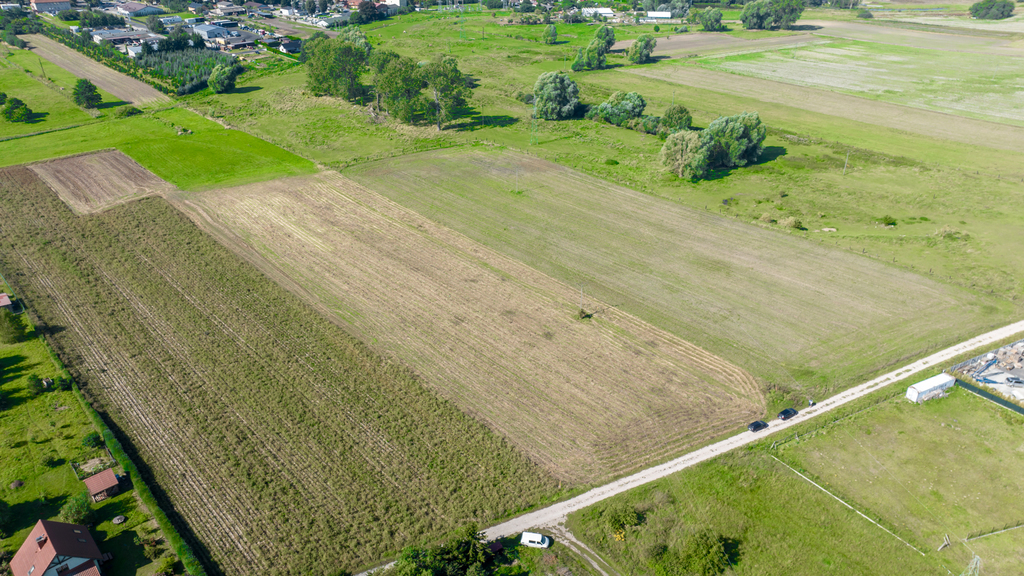 Seven plots of land for sale in Maszewo. The plots are rectangular in shape. Access to the plots is via a municipal road and a private access road. A development permit has been issued for the plots.