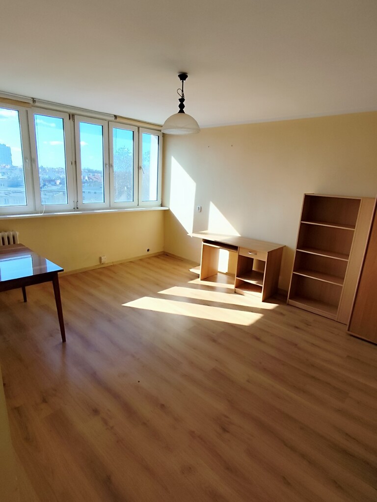 2-room apartment with an area of 34.6 m2 located in the center of Szczecin on the 8th floor of a skyscraper, cooperative ownership right to the premises. Sunny apartment with a view of the entire panorama of the city. Room 16 m2 with a kitchenette separated from the room by glass, a smaller room with an area of 8 m2 with access to a balcony of approx. 3 m2, bathroom with toilet and hallway. Apartment for renovation. Heating and hot water from the city network. Rent PLN 312 Great location in the very center, perfectly connected to the rest of the city. A few minutes away from the Galaxy Shopping Center, many service points, banks, pharmacies, gas stations, educational institutions, cafes and restaurants and many other places useful for everyday life. Trams and buses are available near the building. A beautiful park in the area, from which we can reach, among others, Wały Chrobrego.