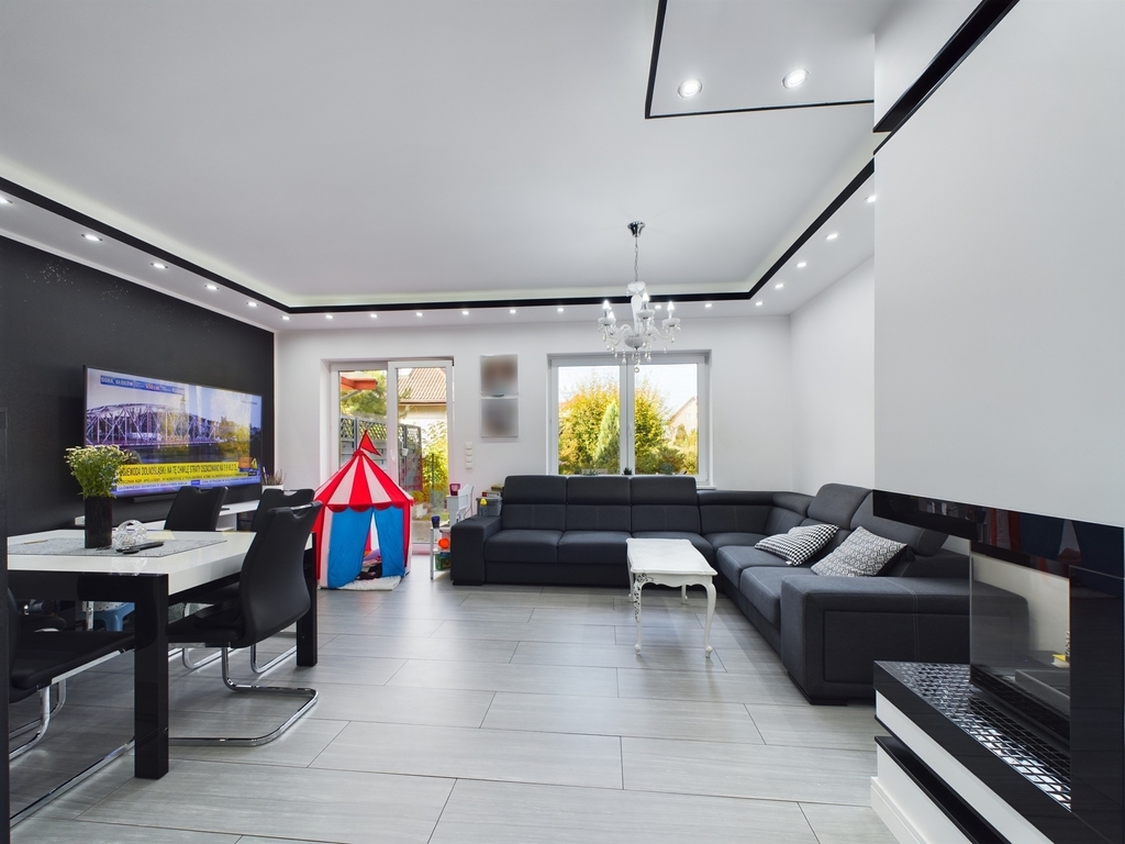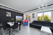 We invite you to familiarize yourself with the offer of a beautiful terraced house, located in a very desirable and attractive location in Stargard – in the Pyrzyce housing estate. Layout of rooms On the usable area of 116 m2 (total 130 m2) there are: On the ground floor: – vestibule with passage to the garage – garage for one car in the body of the building (15.69 m2) – spacious living room with fireplace and exit to the terrace and garden – open kitchen – stairs leading to the first floor with built-in cabinets underneath On the first floor: – two rooms with a balcony – bedroom – bathroom with bathtub and shower – corridor with entrance to the attic Standard of finish The apartment is in perfect condition to move in. Finished in a modern and elegant style with high quality materials. It does not require financial outlays. Fully furnished and equipped with household appliances, RTV equipment to be agreed. Media and other Heating and hot water from a two-circuit gas furnace. Underfloor heating on the ground floor and in the bathroom on the first floor, radiators in the bedrooms. In the living room there is a fireplace, which additionally heats the rooms very much. City sewage system. Triple-glazed plastic windows, electric external shutters on the ground floor. Optical fiber on the way. Building The house was built in 2018 from Porotherm. On a rectangular plot with an area of 218 m2. Fenced with an entrance gate opened by remote control. Beautifully arranged garden with trees, terrace, shed and playground. Exit to the terrace and garden from the south. Playground from the east. Date of issue To be agreed. I invite you to the presentation