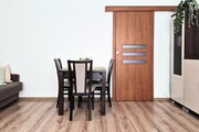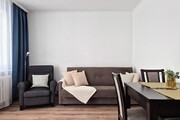 * living room equipped with a sofa bed, armchair, chests of drawers and a table with chairs