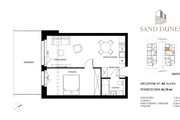 This 2-room apartment, 43.74 m², with a 21.2 m² garden, is located in a newly constructed, intimate apartment building in Dziwnów. The living room comprises a 22.6 m² kitchenette, a 13.9 m² bedroom, a 3.7 m² bathroom, and a 3.5 m² hallway. The apartment is located on the ground floor. Both the living room and bedroom have access to the garden. This intimate development comprises two buildings with unique architecture, ideally located in the first line of development, overlooking the Baltic Sea on one side and the Dziwna River and Wrzosowska Bay on the other. The development is only 60 meters from the sea, and direct access to the beach from the development site will meet the expectations of even the most discerning clients. Custom finishing options and lease management are available. The underground garage includes electric car charging stations. Access to the garage is via an elevator. The underground garage space costs PLN 80,000. The property includes a dry sauna, salt cave, gym, and Kidsclub. The apartment is available now, with turnkey finishing available. Air conditioning and remote control are available, security shutters are installed, and garage doors open remotely. The property is gated.