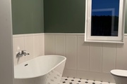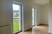 Comfortably finished semi-detached house from 2023 located 6 km from Koszalin, 2.5 km from the S6 route and 12 km from Mielno. The property located in Tatów is ready to move in. The area of the house is 98.28 m2, the plot is 438 m2. The plot is flat, fenced and planted with grass. Ground floor: vestibule (2.68 m2), corridor (1.88 m2), utility room (2.86m2), bathroom (2.61 m2, shower, toilet), living room with dining room (25.45 m2), kitchenette (8.46 m2). Underfloor heating on the first level. From the living room exit to the terrace and then to the garden. Oak stairs lead to the first floor. Tiles imitating wood on the floors. First floor: corridor (3.61 m2), bedroom (15.45 m2), two rooms (10.65 and 10.52 m2), bright bathroom with toilet (5.41 m2, bathtub). Entrance via folding stairs to utility room. Panels on the floors. Heating and hot water from a two-function gas boiler. PVC windows. Anti-burglary doors. Furniture and built-in furniture visible in the photos may remain in the price of the property.