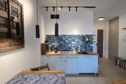 The apartment is finished with high-quality materials and furniture. Italian tiles on the floor and throughout the bathroom, custom-made kitchen units.