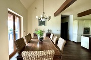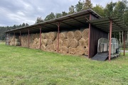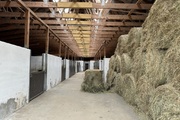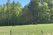 The offered property is ideal for animal breeding – currently horses. The subject of sale has an excellent location, it is situated near the S3 expressway and the road leading towards Kamień Pomorski and further to the Baltic Sea coast (Dziwnówek, Pobierowo). The offer includes, in addition to the farm building, a beautiful, comfortable residential building with a swimming pool. From the slight elevation on which the house is located, leaning against the forest wall, there is a view of the charming estate designed and organized – currently a horse stud farm. The plot with an area of 10.45 hectares in the shape of a triangle. From the west side it borders directly with the forest, one of the borders runs along the district road no. 108 (planted with over 2-meter thuja trees along its entire length), behind which there is a field and forest, and from one side the plot borders an arable field. The residential building built in 2016 with a total area of 203 m2, consists of a living room, kitchen and dining room, 5 bedrooms, two bathrooms and an office room; The house has two entrances from the west – one with a utility room and the other with a hallway and a spacious attic. The house is heated by a heat pump – underfloor heating and radiator heating in the bedrooms; additionally, there is a fireplace in the living room that creates a cozy atmosphere. The heating system is supported by heat recovery. The house is carefully maintained and very well equipped. The thatched roof adds a unique atmosphere. On the east side there is an exit to a paved terrace connected to the pool terrace, on which there is a permanent swimming pool with an area of 48 m2 with heated water (heat pump) and a complete water filtration system. The outbuilding – stable is a very large facility with separate rooms in the form of: bathroom, saddle room, large workshop. The rest of the building has horse boxes that can be easily dismantled – 9 single boxes, two large boxes of about 30 m2, as well as two horse washers and over 60 m2 of storage space, as well as a room with a riding stable that serves as an examination room. In addition, the stable has 9 English boxes (with entrances from the outside). The tack room, bathroom and examination room are heated, and hot and cold water is supplied to them, as is the horse wash. Part of the outbuilding (with a separate entrance) is an apartment with an area of 83 m2, which consists of a living room with kitchen, bathroom, two bedrooms and a spacious hall. The outbuilding is also heated by a heat pump. The apartment has underfloor heating, and there is a paved terrace on the west side. On the roof of the outbuilding there is a 24 kW solar installation. The entire property is fenced. Both buildings are monitored, and each of the English boxes has its own monitoring system. The plot has a designated area for the house with a beautifully landscaped garden and swimming pool, as well as an economic area, which consists of the surroundings of the stable building, including a covered shelter with an area of almost 100 m2, and fenced pastures for horses (2 large – about 2 ha each, 8 medium paddocks and 3 small). In front of the entrance gate there is a paved driveway (exit directly from road no. 108), and a paved road leads to the residential building, located on a hill and about 300 meters from the entrance (which provides a beautiful view and peace). Access to the economic building is arranged separately in a way that allows access by agricultural machinery.
