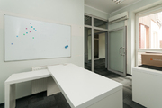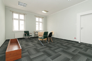 In the office rooms, the floor is carpeted, the walls are painted, and the ceilings have raster lighting. Some rooms have air conditioning.