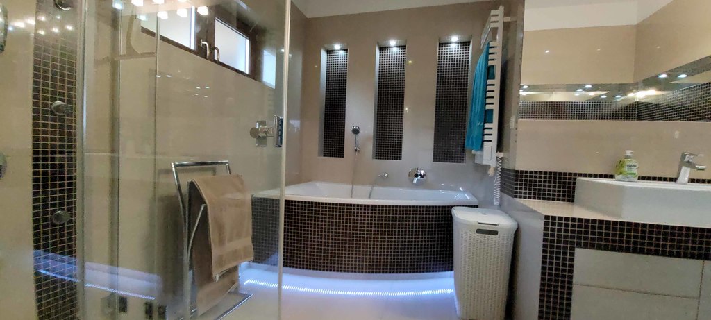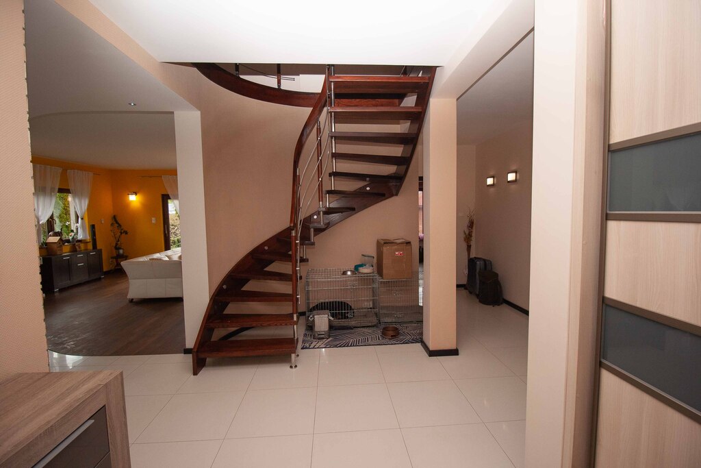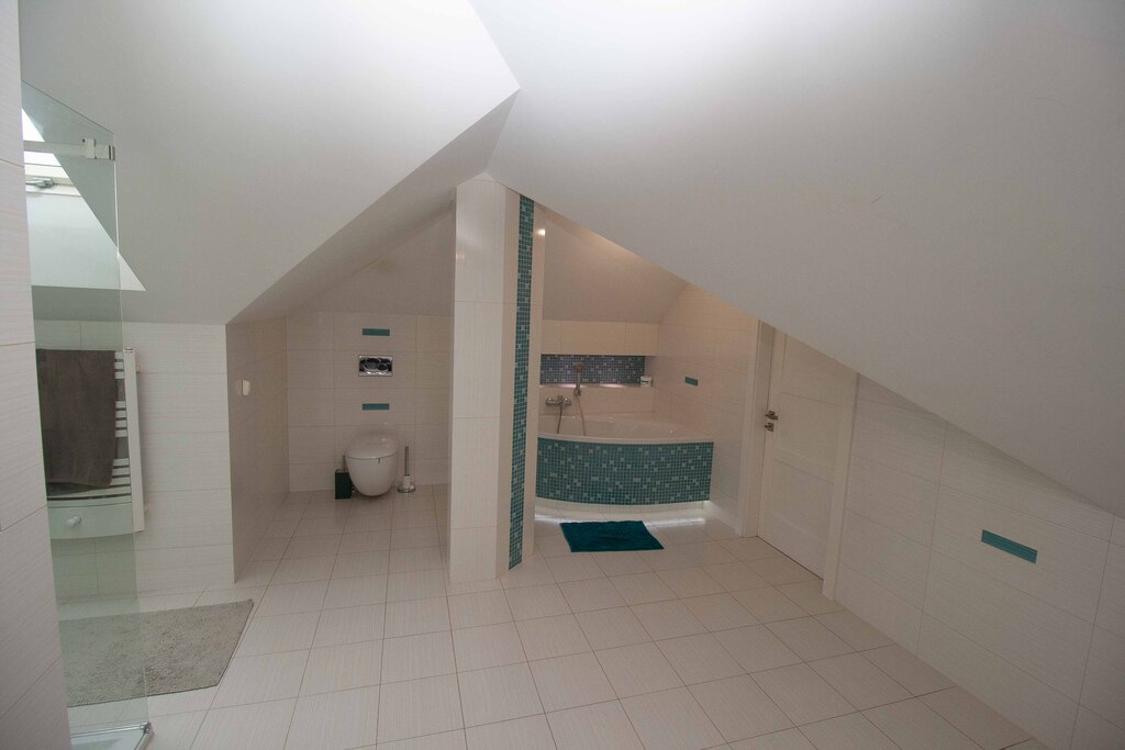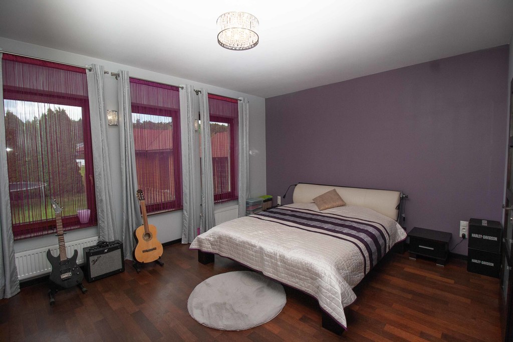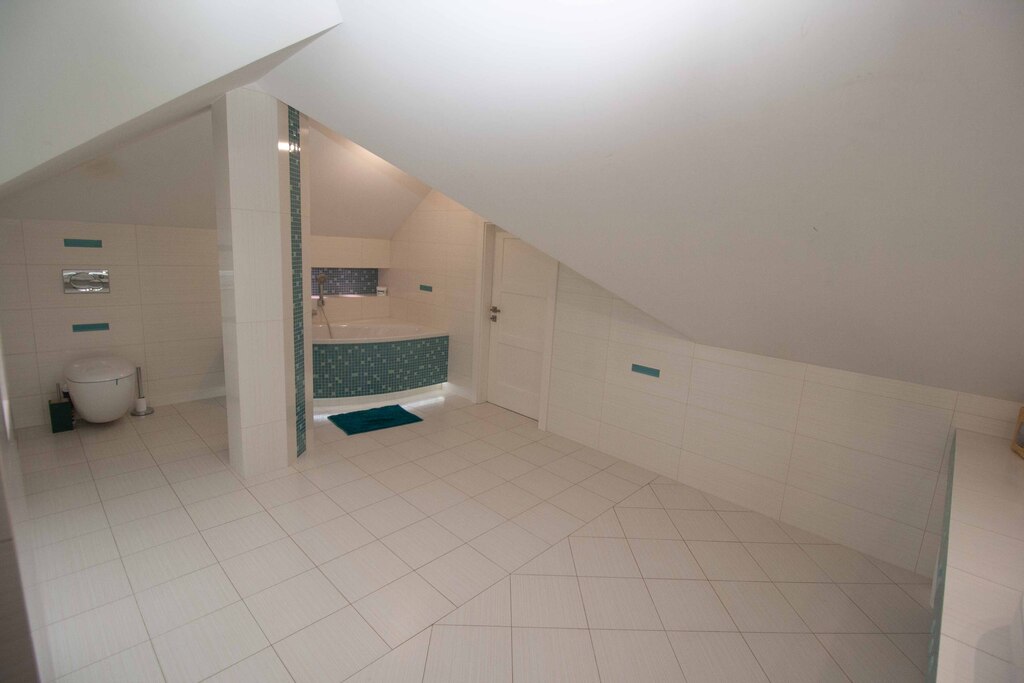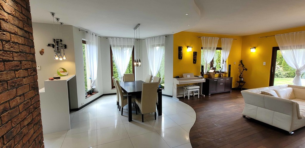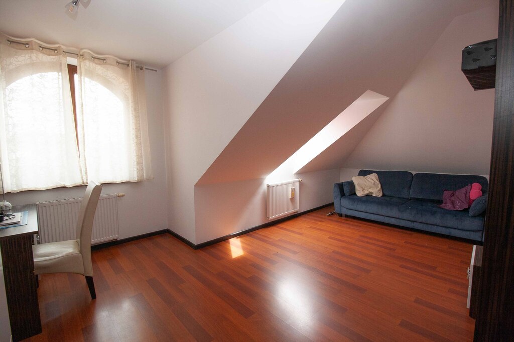 For sale a modern and spacious detached house with an area of 235 m², located on the border of the Warszewo and Osów districts – in one of the most prestigious and sought-after locations in Szczecin. The property is situated on a regular plot of 816 m², in the immediate vicinity of the Wkrzańska Forest, which guarantees residents peace, quiet and access to recreational and walking areas. Access to the property is provided by an asphalt road, with access to public transport (bus). The house is distinguished by its attractive, timeless architecture, multi-pitched roof and functional layout of rooms. The entrance to the property is located on the eastern side, while the garden part with a spacious terrace with an area of 30.3 m² is located on the western side, which ensures optimal lighting of the recreation area. The building has a two-car garage with an area of 36.36 m², and in addition, a driveway for two more cars was made in front of the house. The ground floor (162.43 m²) is a representative and at the same time functional living area of the house. It contains: a vestibule (5.48 m²), a hall (10.15 m²), a spacious kitchen (12.21 m²) with a practical pantry (2.5 m²), a laundry room with a boiler room (7.22 m²), a toilet (1.22 m²) and a comfortable guest room (20.51 m²) with a private bathroom (8.54 m²). The living area also includes a living room with a fireplace, from which there is an exit to the terrace and further to the garden. The fireplace is prepared for the installation of a water jacket. Water underfloor heating has been installed throughout the ground floor and in the bathrooms on both floors. The floors are covered with stoneware and exotic merbau wood. The walls are smoothed and painted in light, neutral tones. Elegant ash stairs lead to the first floor. There is a hall with access to the balcony (11 m²), three well-arranged bedrooms (16 m², 14 m², 13 m²), a comfortable bathroom with a bathtub and shower (6.9 m²) and a practical wardrobe (1.5 m²). Additionally, there is an attic above the first floor – a utility room with an area of 19 m², ideal for storage. The property is equipped with a modern, two-function gas boiler with a Buderus tank. A central vacuum cleaner system is distributed throughout the house. Triple-glazed wooden windows provide excellent thermal and acoustic insulation. Internal doors are made of solid ash. Fiber optics has been brought into the building. The plot area has been developed with attention to aesthetics and functionality – a lawn has been arranged, and a gazebo has been built as a utility room. The whole creates a coherent, comfortable and ready-to-move-in house of a high standard, ideal for people looking for a modern property in a green, prestigious part of the city.