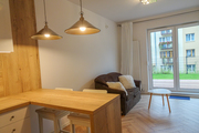 Ul. Strzelecka, close to ul. 5 go Lipca and Jagiellońska. Center. Immediately on ul. Strzelecka for rent a very nice 2-room apartment with an area of 35 m2 with a terrace of 18 m2 and a garden of 40 m2 with a parking space in the underground garage in a new building from 2019. APARTMENT DESCRIPTION: Room with kitchenette 19 m2, including a kitchenette 7.8 m2 with built-in furniture and household appliances (electric oven, ceramic hob, dishwasher, hood). From the room exit to the terrace lined with boards of 18 m2 and further to the garden of 40 m2. Passage from the living room to a smaller room of 10 m2 – a bedroom with a double bed 140 cm wide and a built-in wardrobe 3.4 m long also with exit to this terrace. Bathroom 4.2 m2 in Spanish terracotta and tiles, with a shower cabin, washing machine, sink with cabinet, mirror, toilet. Anti-burglary entrance door, roller blinds in the windows. A small room of approx. 1.5 m2 for a bicycle or utility room by the apartment. BUILDING DESCRIPTION: New building made of silicate blocks built in 2019. A modern elevator leads down to the hall with parking spaces. Apartment without architectural barriers. COSTS: Rent PLN 2,500 plus PLN 300 for a parking space, rent to the manager PLN 365, additional heating and hot water from SEC, in winter approx. PLN 200 less in summer, metered, water and electricity PLN 85 per month. Cold water and sewage approx. PLN 68. Deposit PLN 4,000. Possibility of viewing after making an appointment by phone.