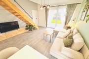 For sale an extreme semi-detached house in Warzymice from 2022 located on a plot of 460 m2. No slopes! The property has a garage in the body of the building with an area of approx. 17 m2. Fenced plot. Possibility of parking 3 cars in front of the building. The house is very sunny, with a view of the garden and single-family housing. A huge advantage is the peace and quiet due to the lack of neighbors from the side of the garden and terrace of the building. Access and driveways to the building made of concrete blocks. Municipal access road, lit. The property is noteworthy due to the quick access to Szczecin and also in the immediate vicinity of a kindergarten and school. The area of the premises of approx. 112 m2 consists of: Ground floor: – garage approx. 17 m2 with a Wiśniowski gate, – hall approx. 4 m2, – living room (approx. 25 m2) with exit to the terrace and garden approx. 400 m2, – room/study approx. 6 m2, – high-quality kitchen with household appliances (approx. 5 m2), – toilet approx. 1 m2. A beautiful wooden staircase leads to the first floor of the property. 1st floor: – hall approx. 11 m2 – room approx. 17 m2 (can be returned to its original state and converted into two rooms), – bedroom (approx. 12 m2), – bedroom (approx. 8 m2), – bathroom with bathtub – shower (approx. 7 m2). Above the first floor, an unused attic with retractable stairs. Other information about the property: Internet and TV installations distributed in the building. Heating and hot water via an individual heat pump – air (economical maintenance of the house). Underfloor heating on the ground floor and on the first floor. Double wall between premises. Gable roof covered with ceramic roof tiles (insulated). PVC windows and balcony doors, 3 panes. Doors to the terrace in a sliding system. Sectional garage door, automatically controlled. Garage additionally insulated. Sewerage and city water. On the plot, rainwater tanks with water distribution to the lawn. Low maintenance costs of the property. The equipment of the property is almost entirely included in the price of the property. EXCLUSIVE I invite you to the presentation.