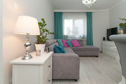 In the living room there is a comfortable corner sofa and a table (the table from the photos with chairs and floor lamps will be removed, another table with chairs can be inserted).